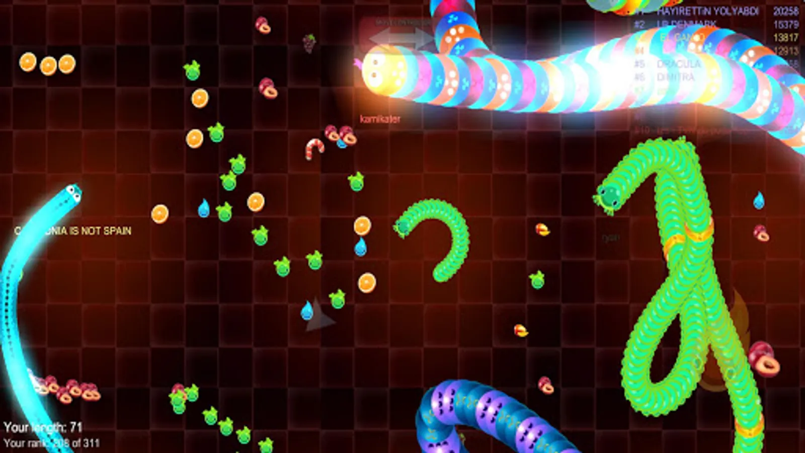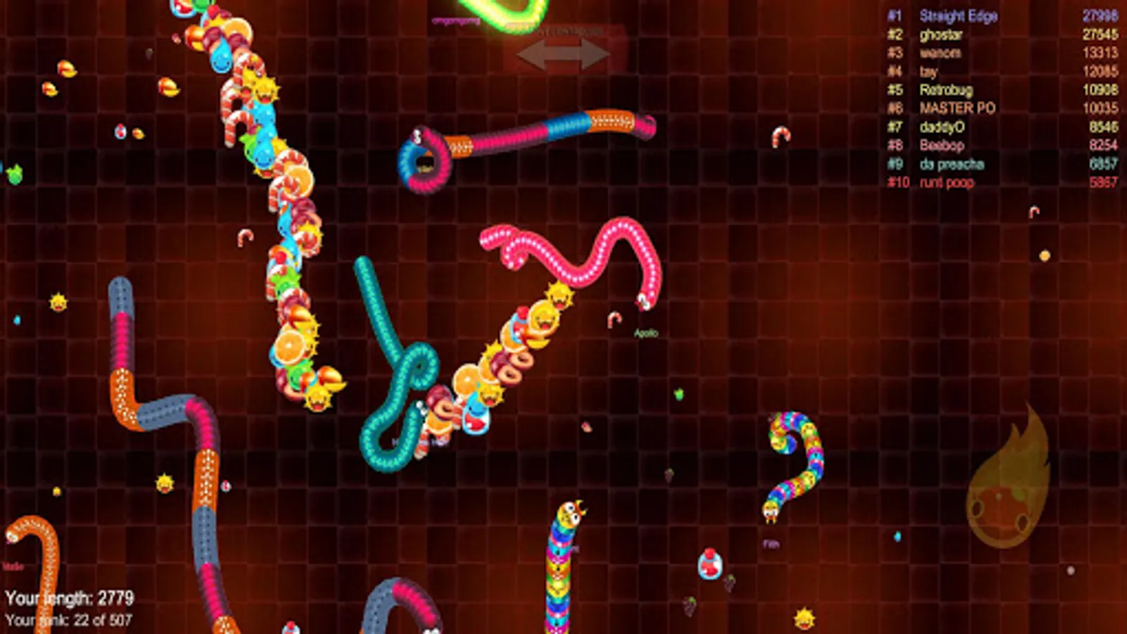 - Eat the mass of the snakes and worms that you kill as fast as possible before others do.