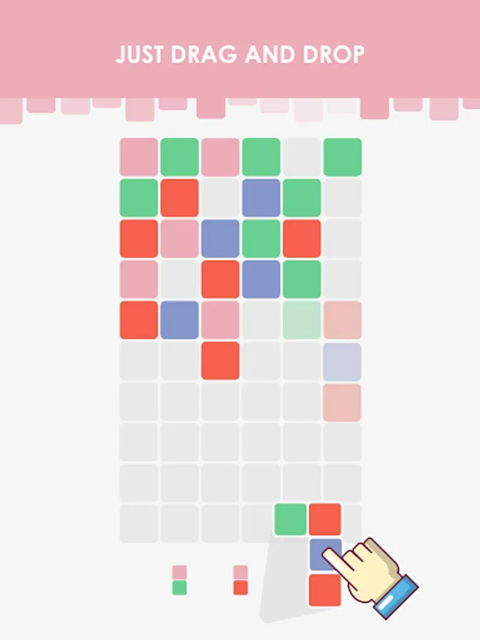 Drag & drop puzzle pieces to the grid and merge sets of 2 or more pieces of the same color. Clear pieces, leave space for new ones and get a new higher score. Easy to play hard to master!