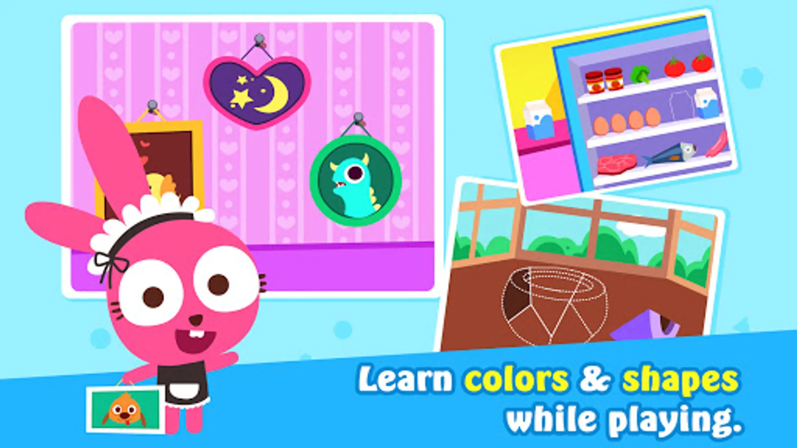 With fun gameplay, not only will kids learn about categorization, colors and basic math, but also get a basic understanding of shapes and graphics. Learn in fun!