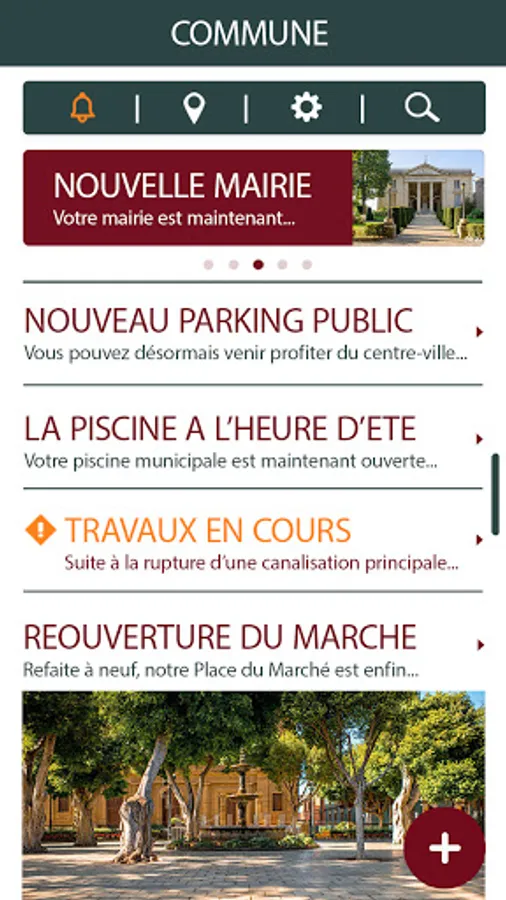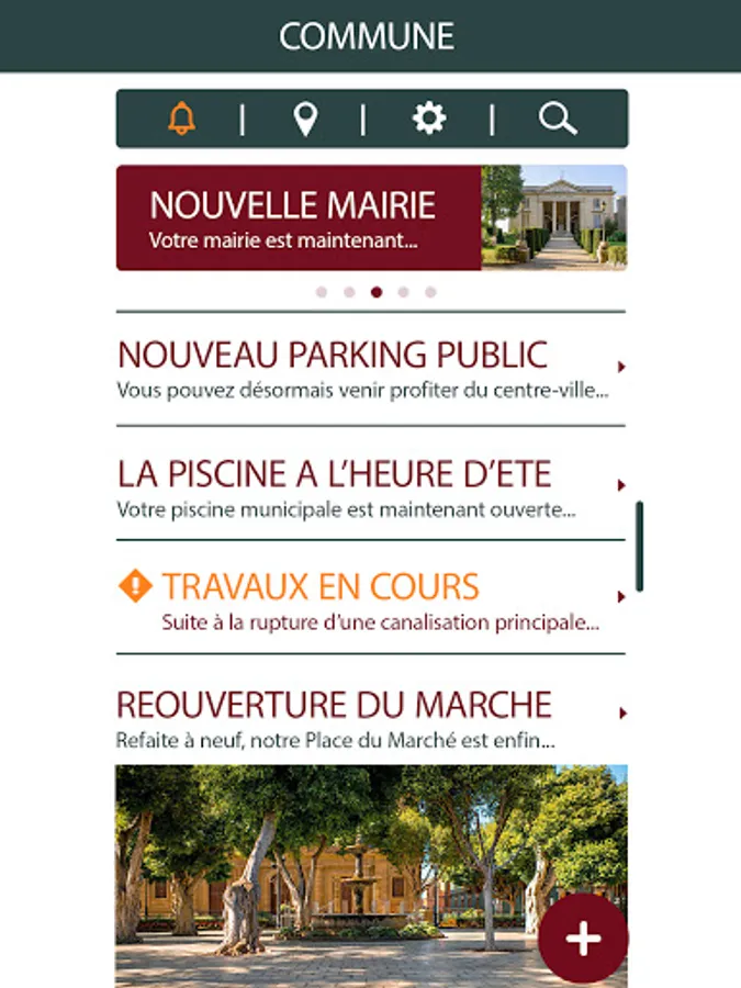 Canteen menus, daycare hours, life of associations, opening hours of the town hall, market day ..., everything that makes the daily life of your municipality is now easily accessible; you will never miss any information thanks to the notifications sent with each new publication.