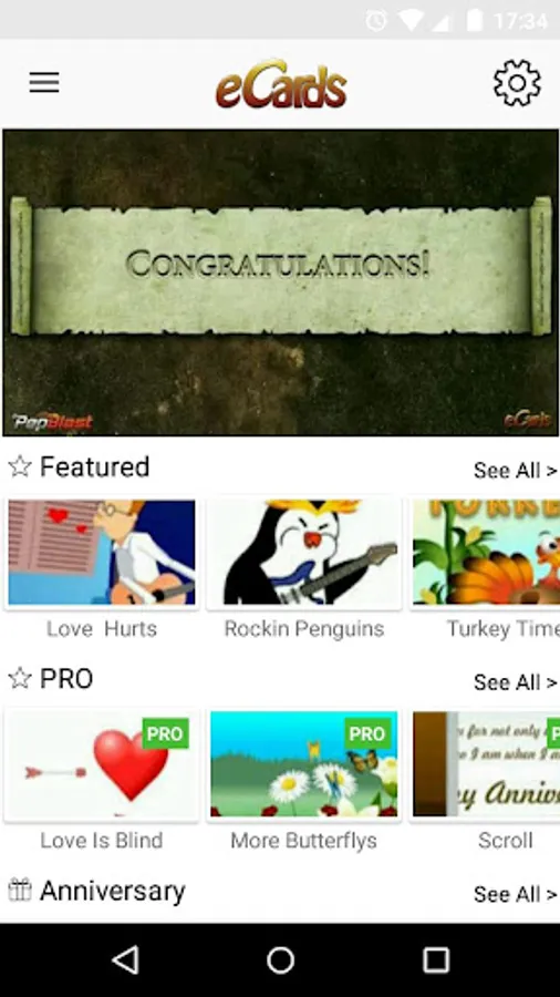 Most eCards (~90%) are free to create and send. Selected PRO eCards require a PRO subscription (send unlimited PRO eCards for 1 year for only $1.99 in US).