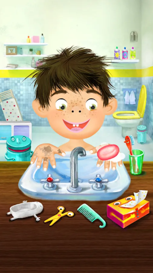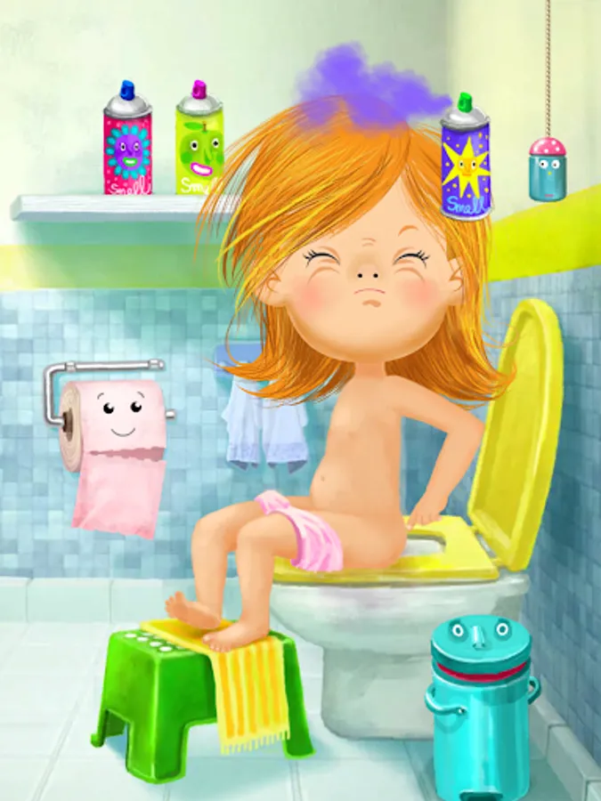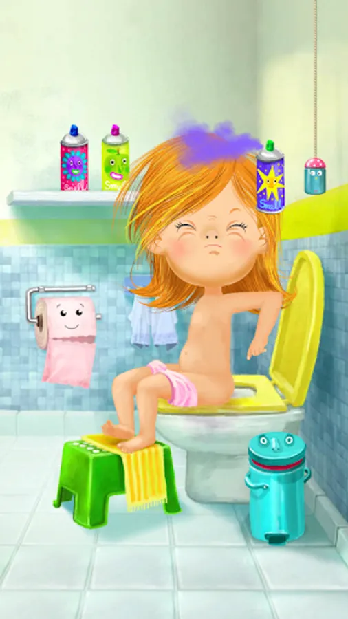Both, boy and girl characters have variety of emotional expressions, so everyone can play regardless of spoken language or age. After completing bathroom challenges, little players will be awarded with cheerful applause.