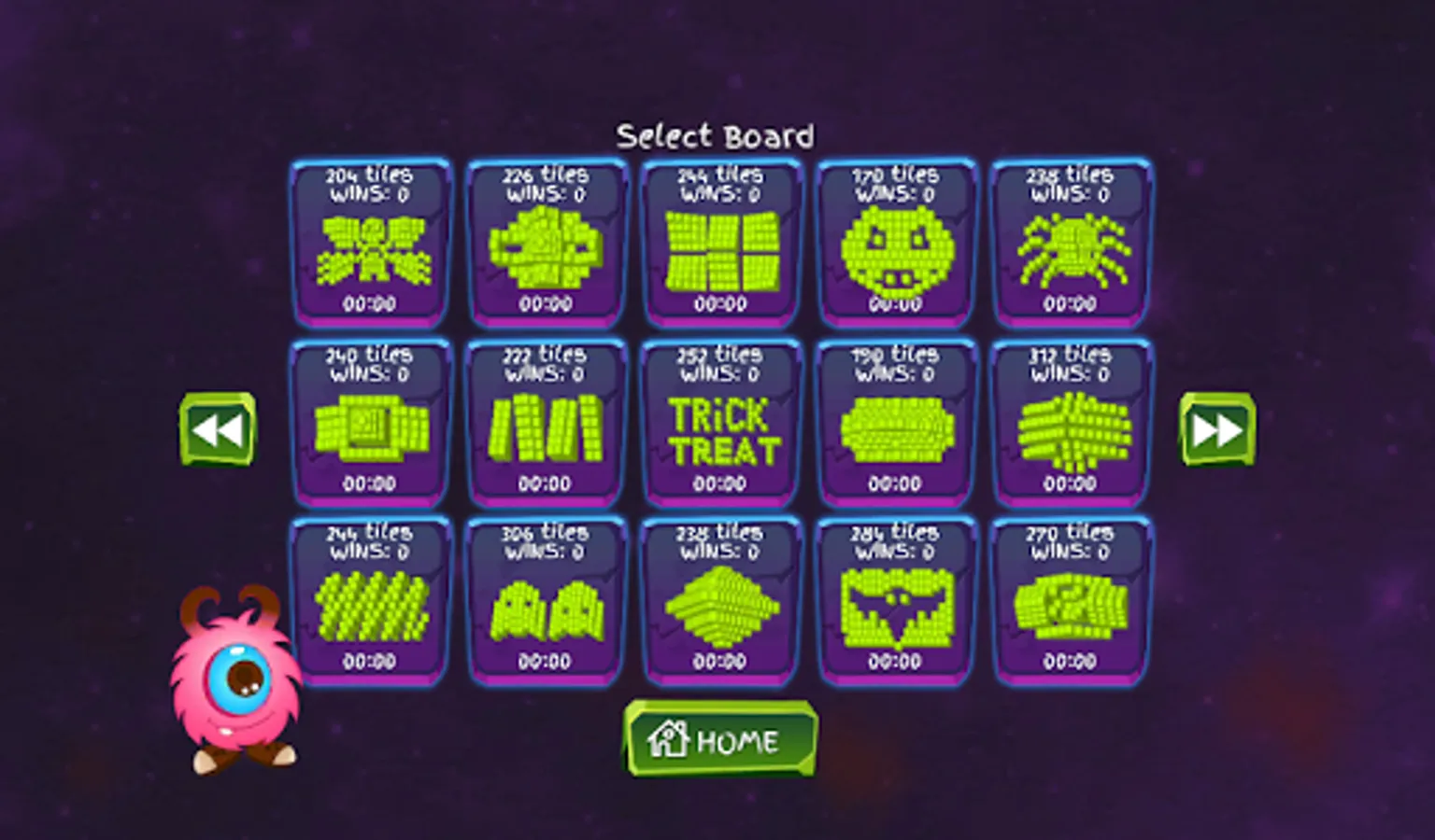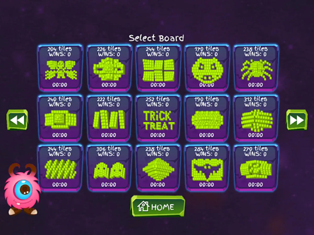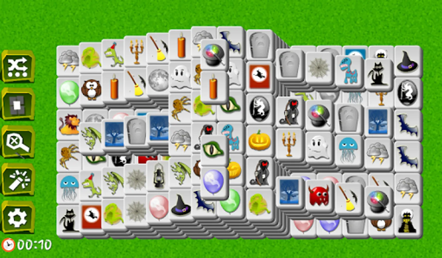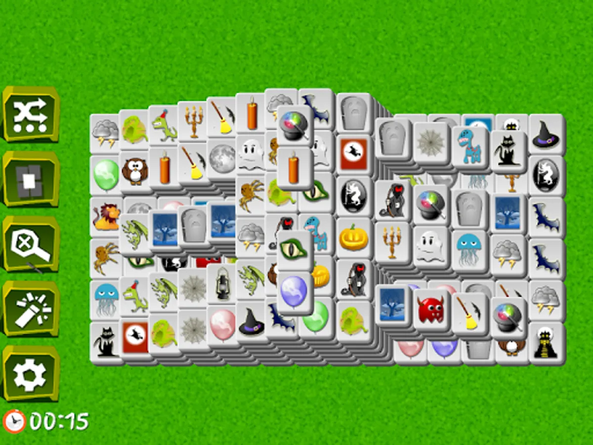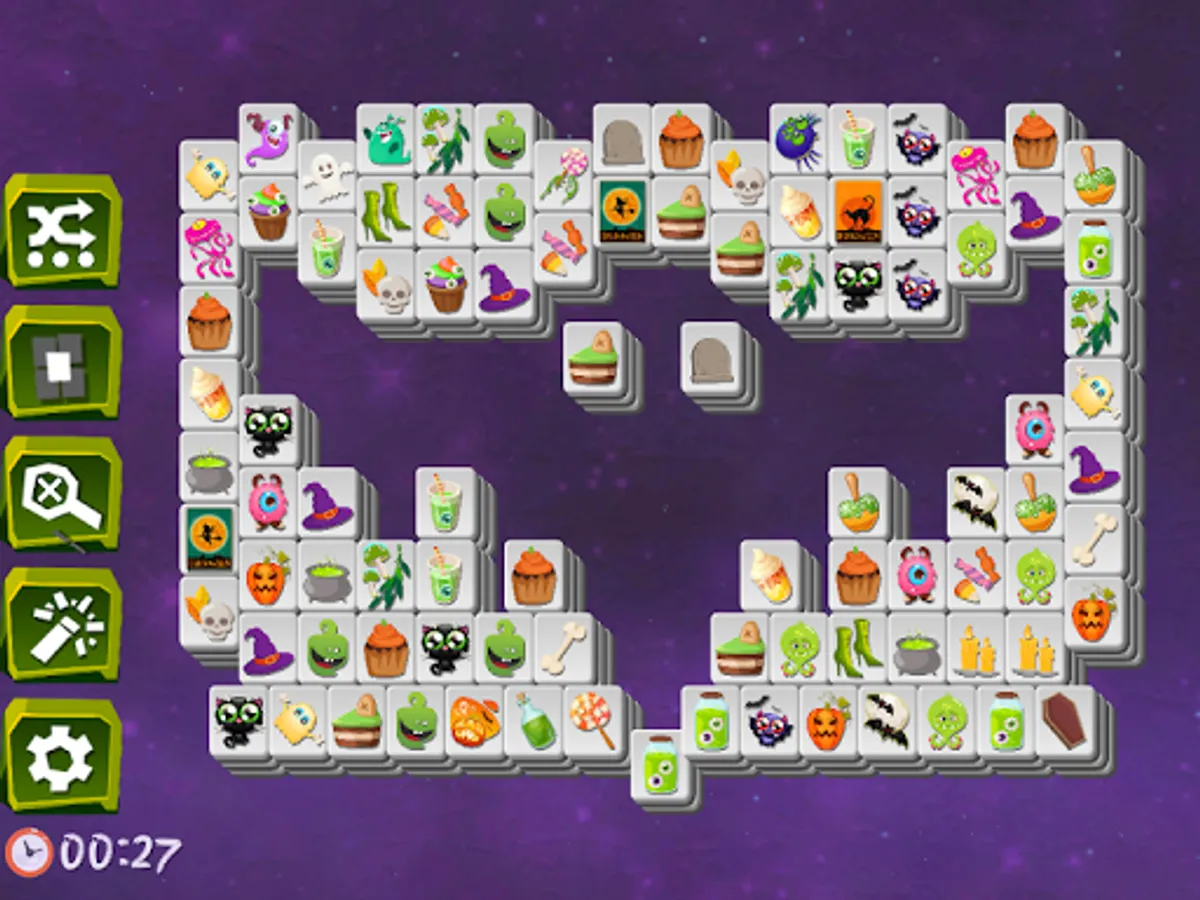 😈Play the classic Mahjong game with colorful Halloween theme with pumpkins, ghouls, witches, demons and bats. The artwork is cartoonish and colorful in style.