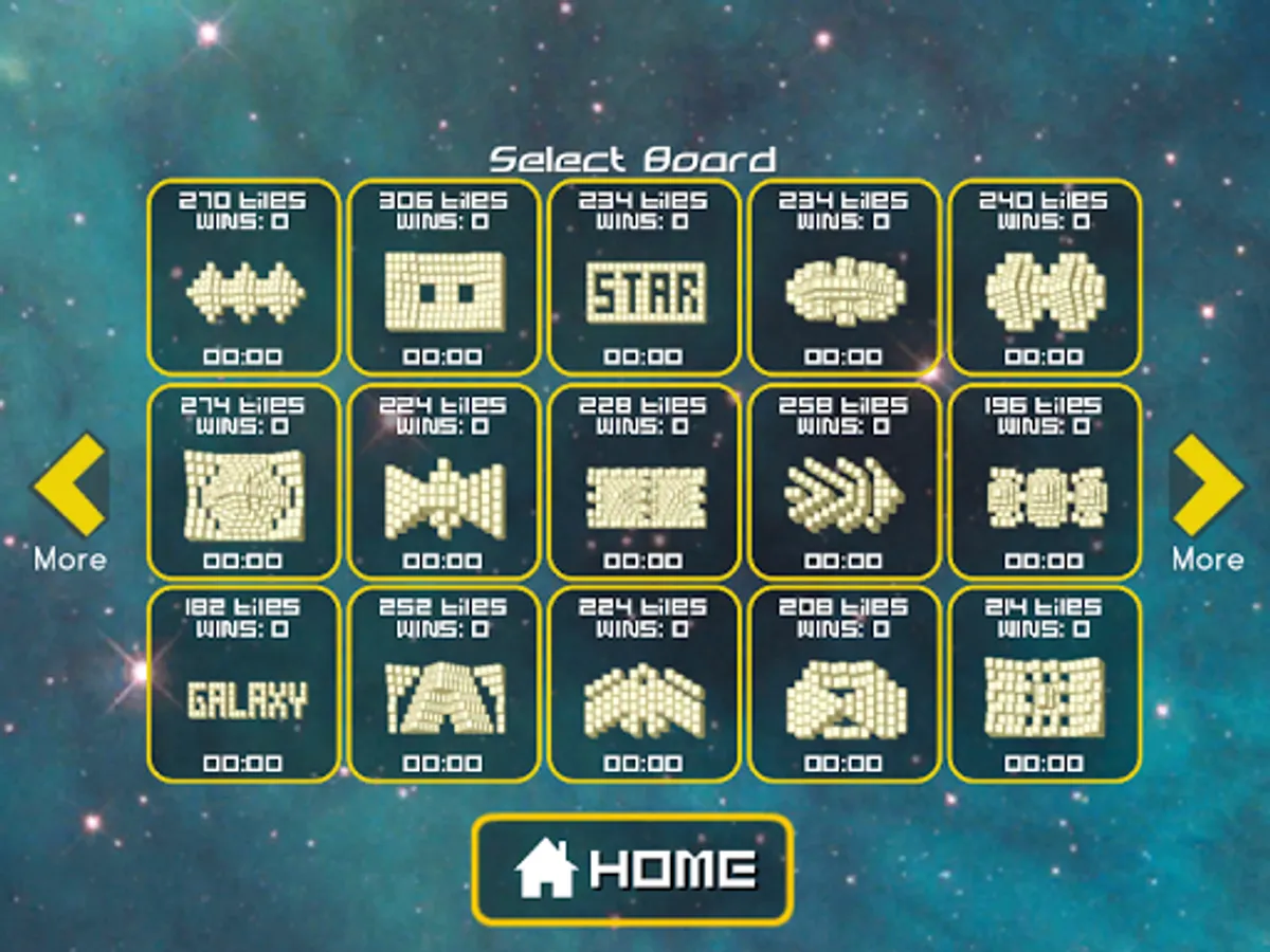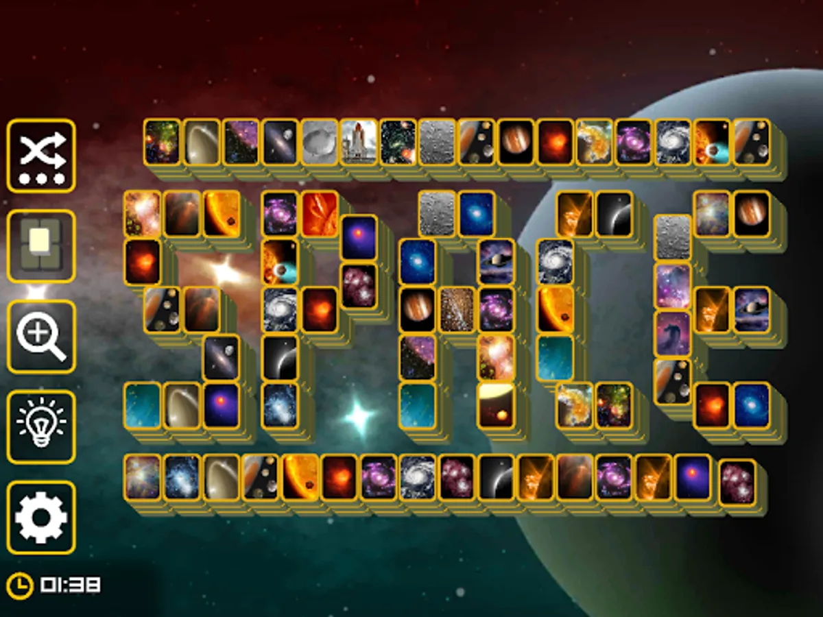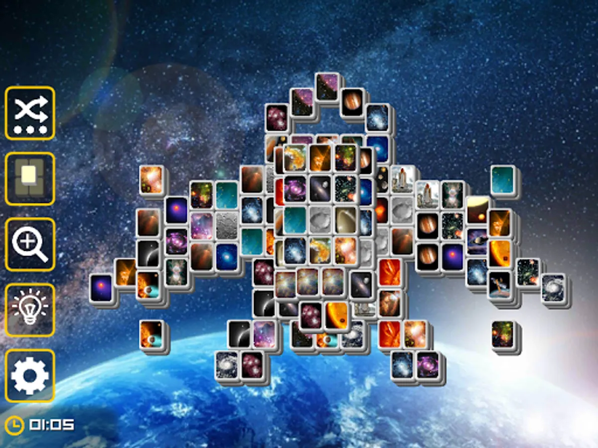 Play classic Mahjong (also known as Mahjongg or Majong) Solitaire with colorful epic galaxy, space, planets theme on your mobile devices. This Mahjong (Mahjongg) Solitaire is an easy game to play and this version has simple tap interface, good for single touch (one tap) game play.