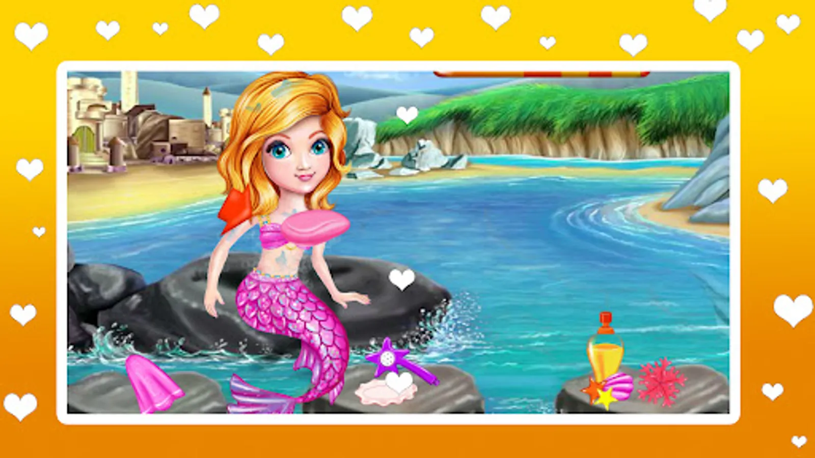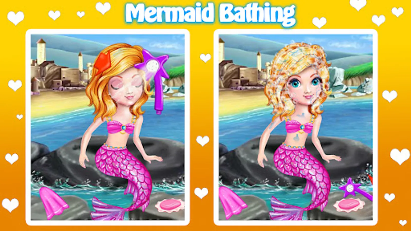 Start the game with a bathing session that mermaid needs before the anything else. Use shampoo and soap to clean her hair, body and tail and make sure to remove any track of soaping with water.