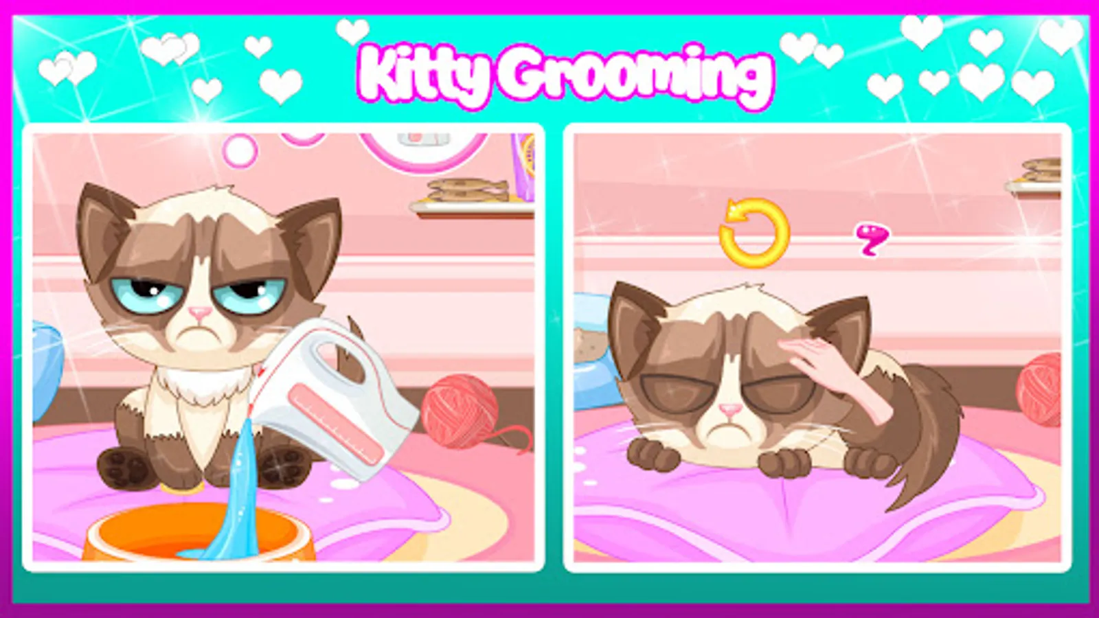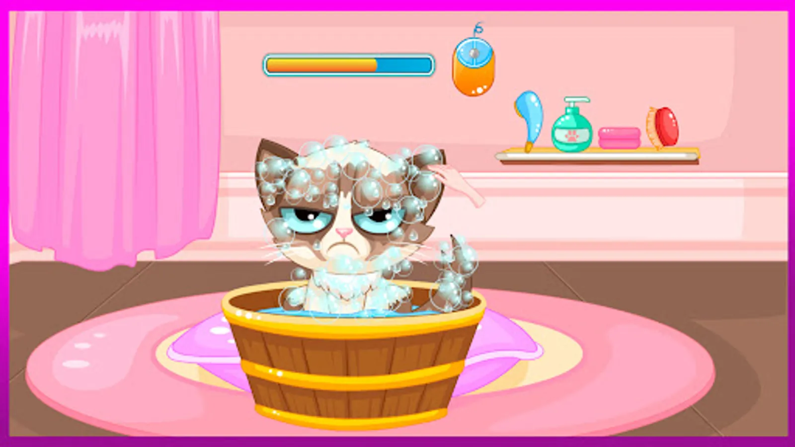 We prepared for you a new fabulous girl game where you can have a wonderful time playing with an adorable kitty. She is sleepy and has a funny face but is very attached of people who spend time with her doing several activities. Are you ready to start playing with the kitty? Follow the instruction for grooming session and make sure you feed the kitty with milk and her favorite food. In the next level comes the bath time where you must wash the kitty with shampoo and a lot of water to make her fur shiny and good looking.