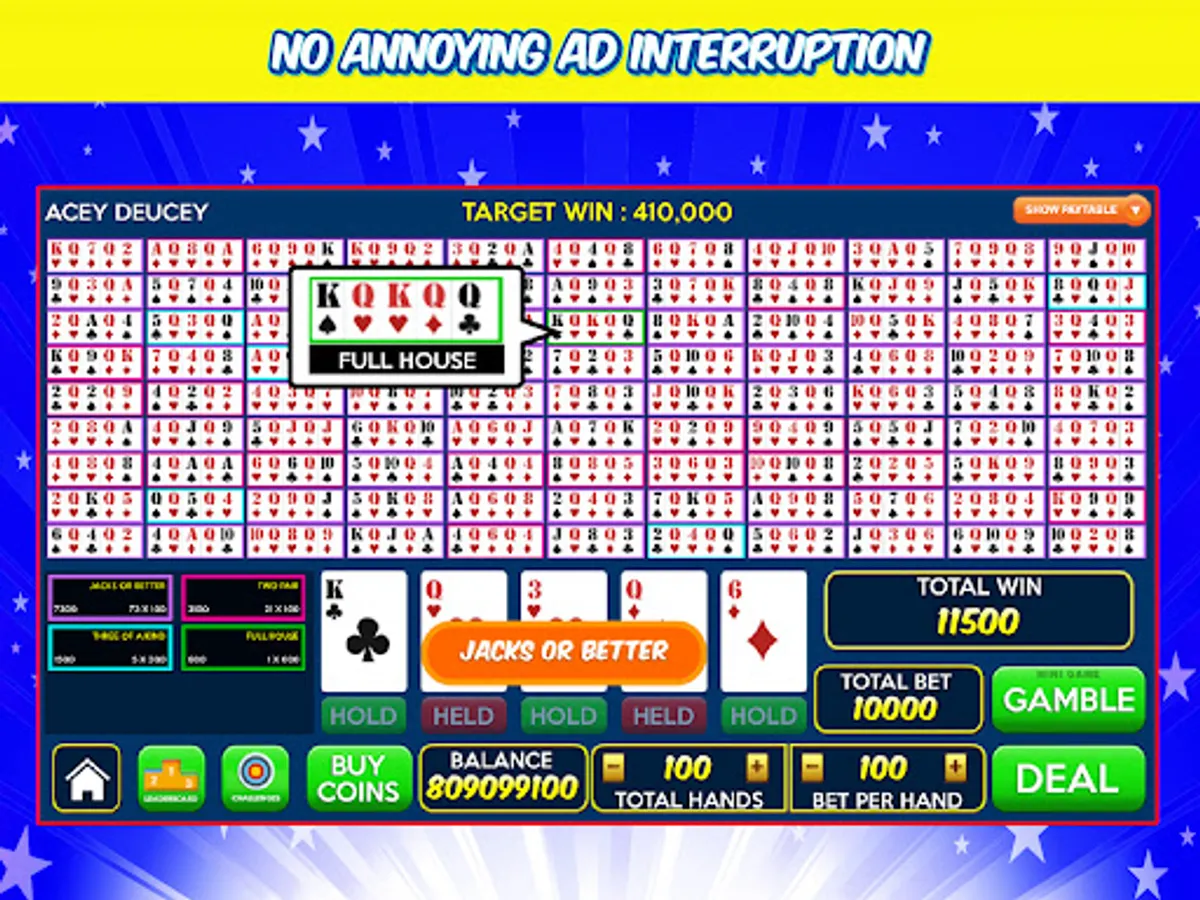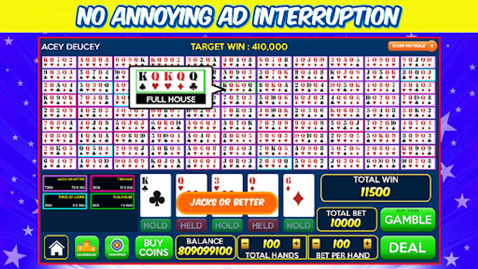 Prizes and bonuses: Hop in the video poker city where you can win Royal Flush ! Playing the classic video poker games live is full of excitements , bonuses, rewards, and challenges. Try out the fun mini games and win big. Spin the fortune wheel and win awesome daily prizes.