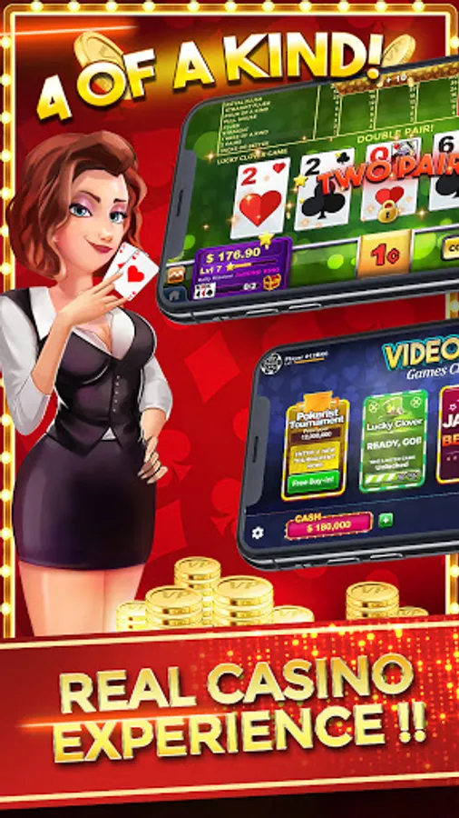 You love Poker and enjoy Slots Fruit machine with hit jackpot? Are you willing for a free and easy offline play to be a multi coin king on the 5 card draw poker game?
