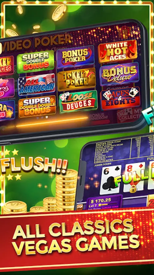 So, let's enjoy the very popular Video Poker variants, and try to improve your skills before leaving to Las Vegas! Be lucky for free on your smartphone and tablet and let's win BIG!