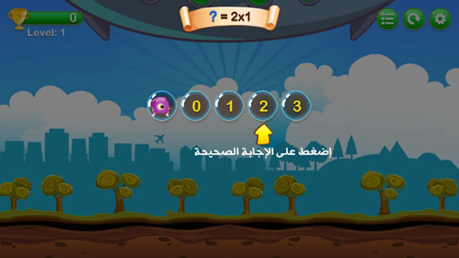 This game consists of twenty entertaining levels; through this game the player selects the right answer for the multiplication procedure to prevent invaders from reaching the Planet. The game aims to learn the multiplication table through entertaining playing.
