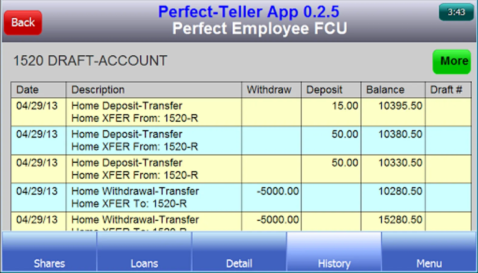 Mobile App version of the Perfect Teller program, which allows you to access your accounts at your credit union.
