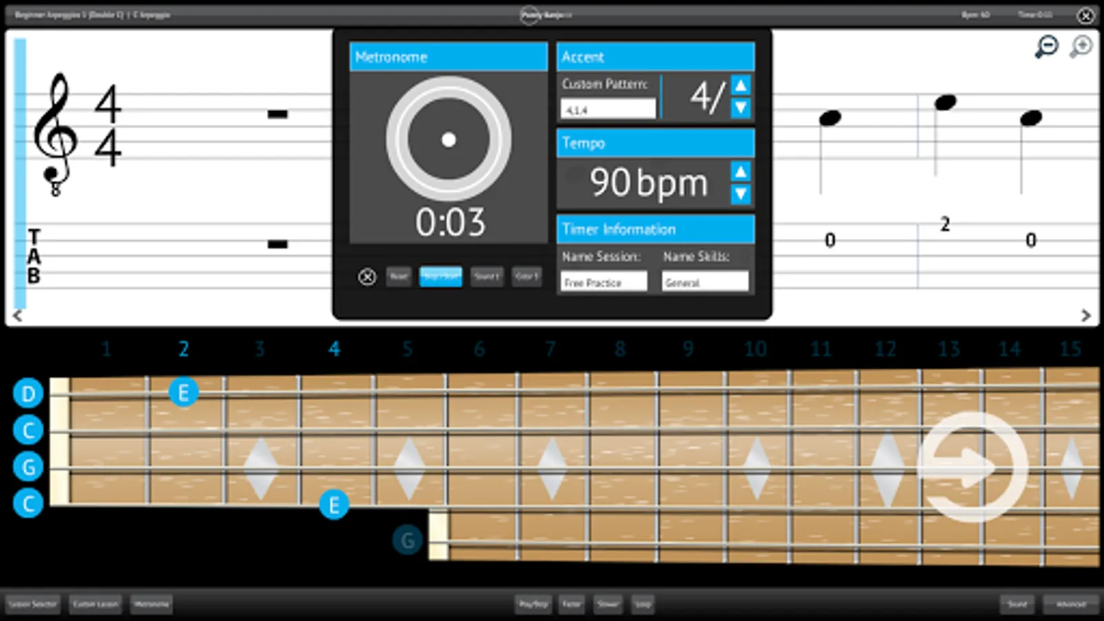 Play along with Purely Banjo, with the help of a fretboard, animated musical score and tab notation. Live animation makes it easy to follow the music, so you can practise in a way that suits you - whatever your skill level.