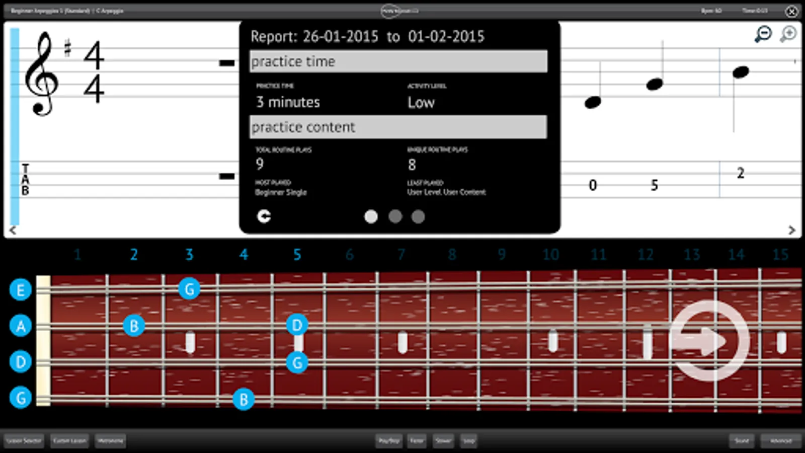 Choose from one of 90 routines included in the software, which have been specially designed to improve your playing technique from the moment you begin. All routines have been created by a professional musician with the aim of improving skills for all abilities, whether you're a beginner, intermediate or advanced player.
