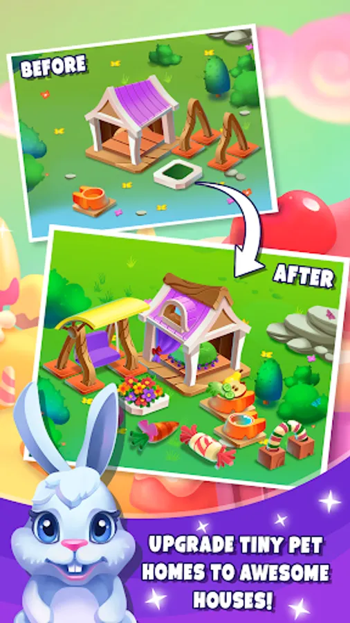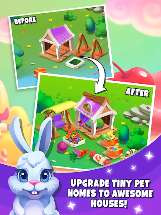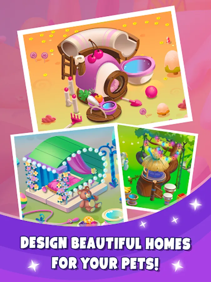 - Start with tiny pet homes and upgrade them all the way to pet palaces!