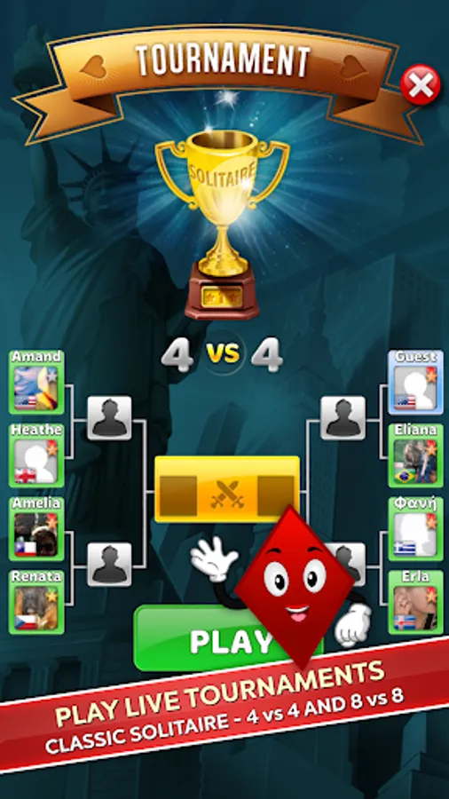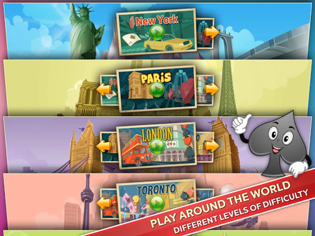 Travel to iconic destinations while advancing your Solitaire skills until you are ready to take on the best players in the world.
