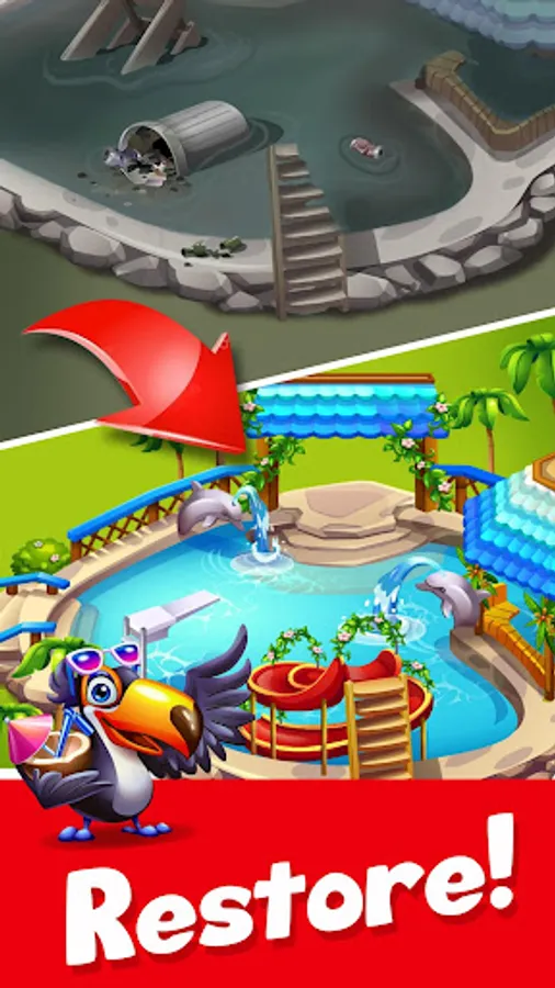 An uncharted island paradise is waiting for you to explore in this brand new match-3 adventure game! Beat match-3 puzzles to collect resources, then use those resources to build everything your family needs! Spruce up your island with beautiful decorations, from statues and plants to pets you can collect! Open up new areas of the island to expand your family’s new home, and help them turn a bit of misfortune into a lucky break!
