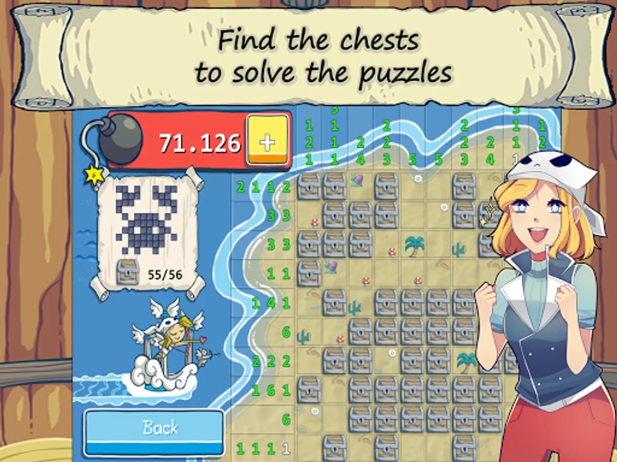 ✔ The only one picross game that reveals the squares where there are no chests without clicking them.