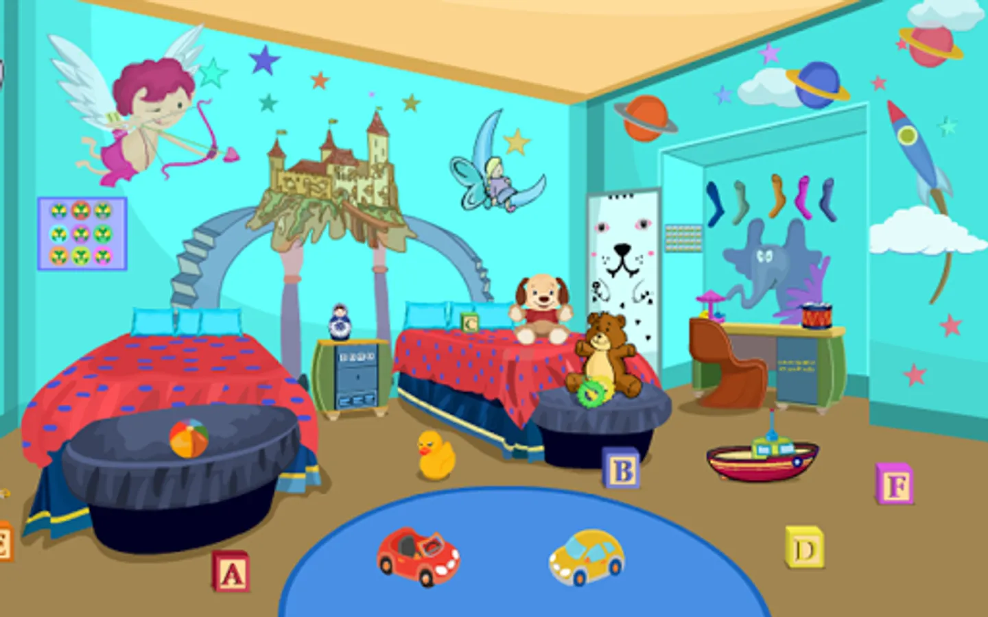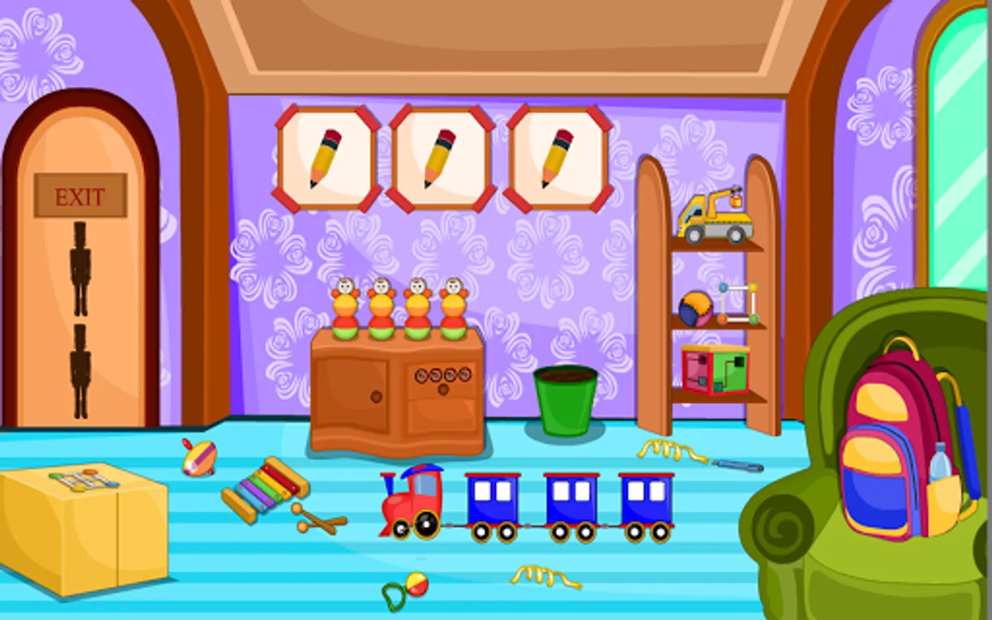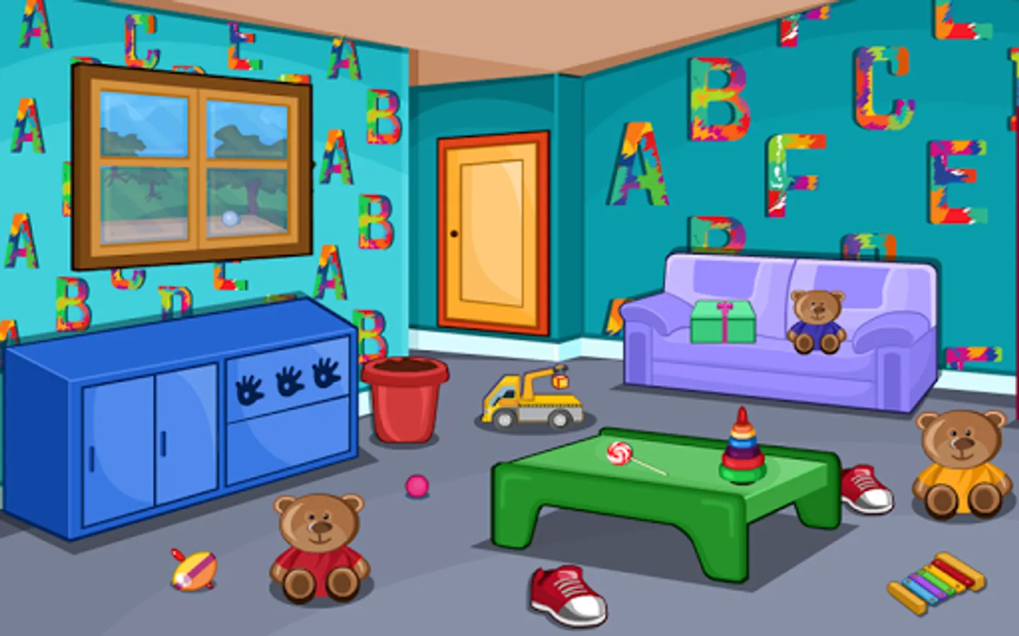 To scare your little kid brother you enter his room to set up prank. Unknowingly you step onto its skates and trip over door of room, it gets locked. Anxiety strikes as you find kids room door locked. Kids room turns out to be scary as you are in all alone! Room escape game, puzzle kids room V1 is first version of puzzle kids room escape game, you escape from kids room by exploring hidden objects and surroundings. It's a room escape game, solve a series of puzzles using hidden objects as clues, and escape from room. Find hidden objects, combine them in order to escape and complete levels of room escape game. Here you got locked up in kids room surrounded by kids room hidden objects to solve puzzles with help of kids room things as hidden objects made available to escape from puzzle kids room. Room escape game, puzzle kids room V1 consists 9 levels of puzzle kids room escape, updating levels 10 to 13 are available in new version of puzzle kids room escape game. Each level has different hidden objects and puzzles to solve. Level 1 puzzle kids room escape; pencil, bunnies, with other hidden objects aids to solve puzzles aids puzzle kids room escape of puzzle escape game. Level 2 puzzle kids room escape; school bag, lunchbox, purple robot with other hidden objects aids to solve puzzles aids puzzle kids room escape. Level 3 puzzle kids room escape; telescope, globe, with other hidden objects aids to solve puzzles aids puzzle kids room escape. Level 4 puzzle kids room escape; blocks, toys, spaceship with other hidden objects aids to solve puzzles aids puzzle kids room escape. Level 5 puzzle kids room escape; book, pillows, compass with other hidden objects aids to solve puzzles aids puzzle kids room escape of puzzle escape game. Level 6 puzzle kids room escape; chocolate bars, pastries, with other hidden objects to solve puzzles aids puzzle kids room escape of puzzle escape game. Level 7 puzzle kids room escape; clock, pencil box, candy puzzles with hidden objects, solve puzzles aids puzzle kids room escape of puzzle escape game. Level 8 puzzle kids room escape; dolls, teddy bear, car with other hidden objects aids to solve puzzles aids puzzle kids room escape of puzzle escape game. Level 9 puzzle kids room escape; floor mat, candy puzzle with hidden objects aids to solve puzzle aids puzzle kids room escape of puzzle escape game.