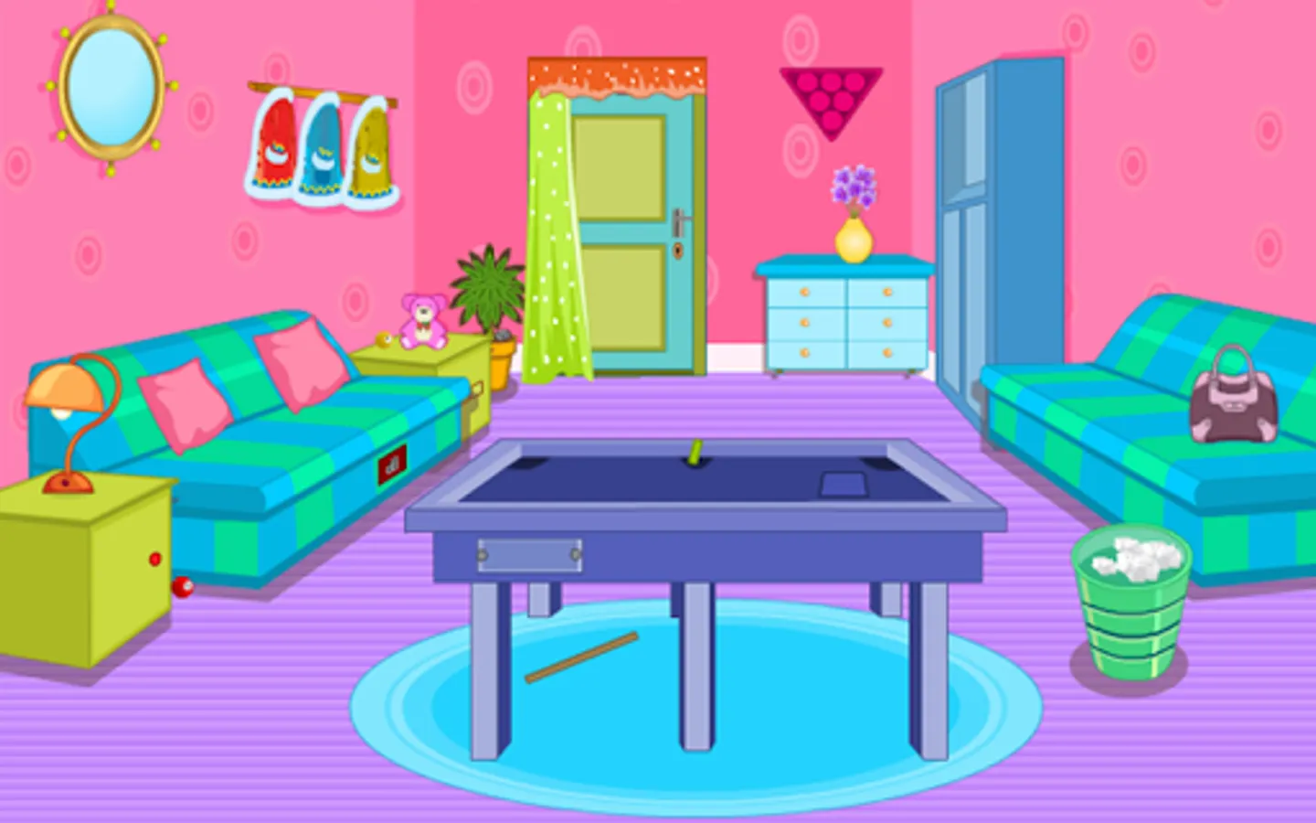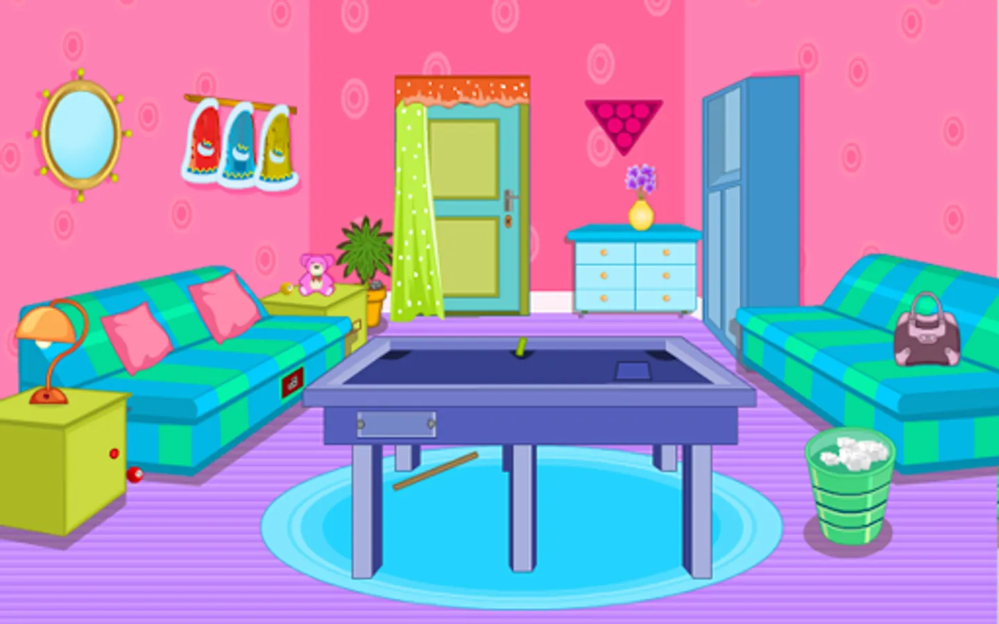 • Have to collect lot of colored snooker balls to use it to get the main door key and escape from this room.