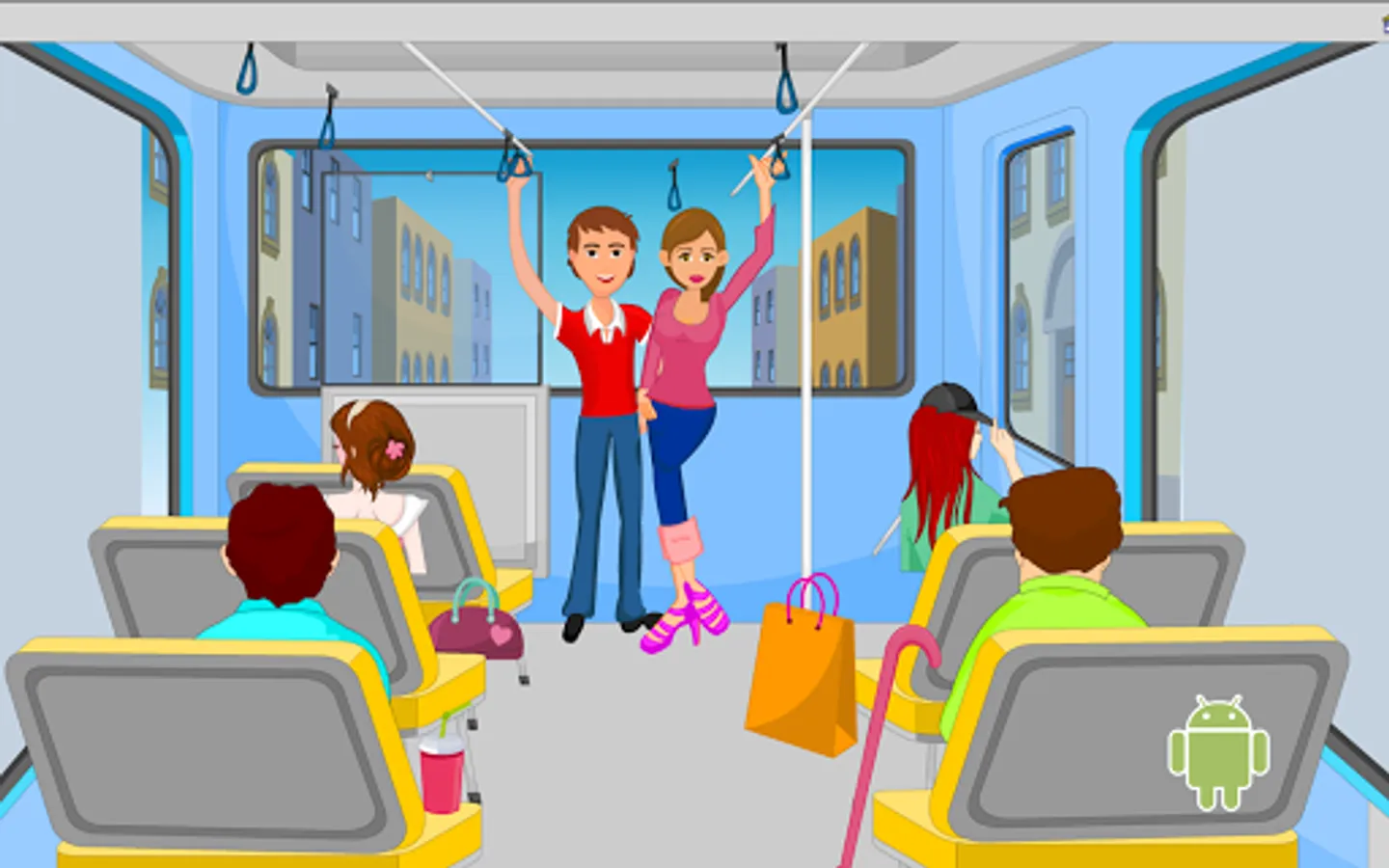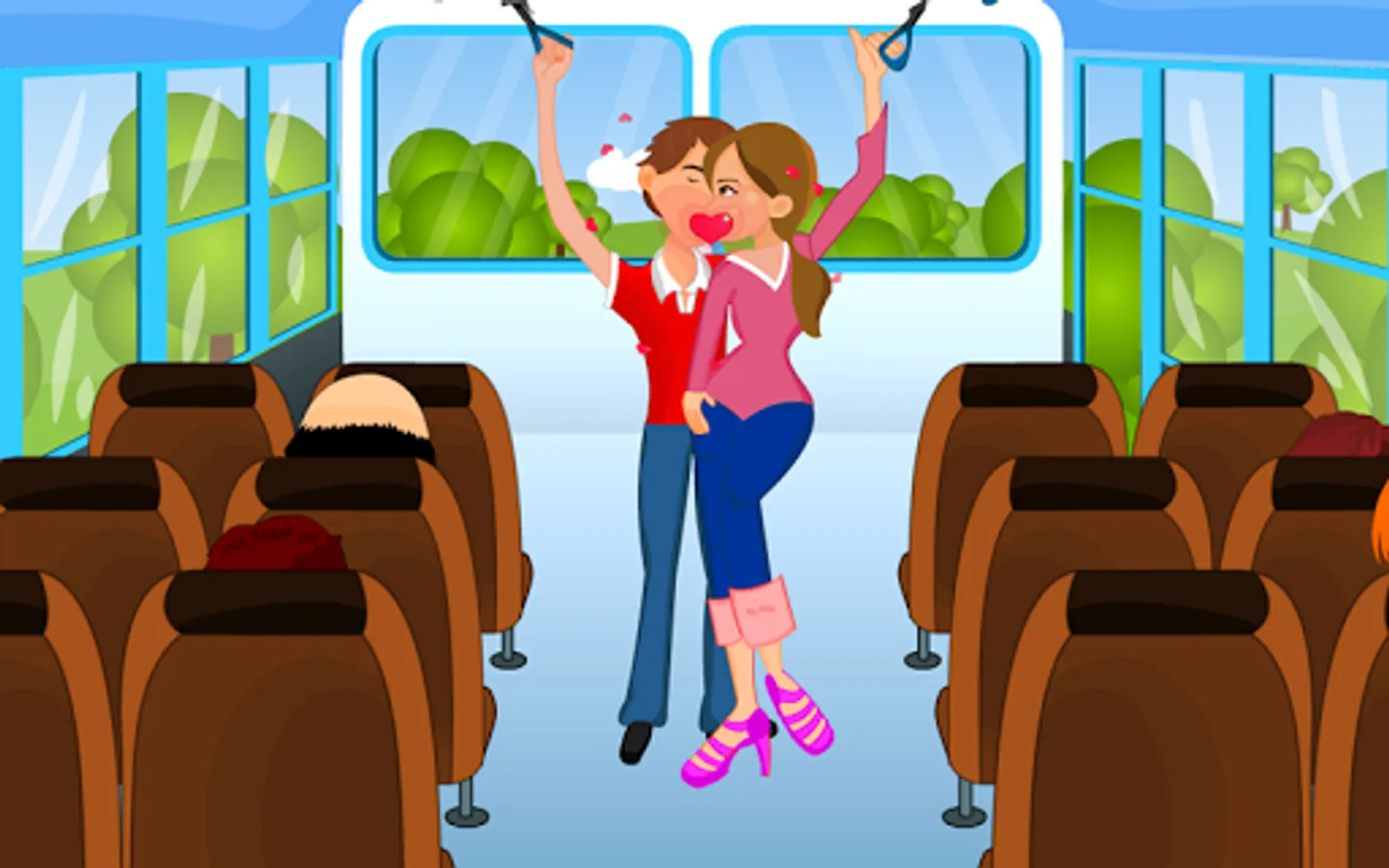 The two couples who newly got married went on a honeymoon trip to a foreign country. As they reach the place they take a bus to go for a movie and while traveling in the bus they felt like giving each other a kiss, since they love each other so much. The app is all about helping the two kiss in the bus and filling the love meter before the clock runs out and move to the next levels. When someone gets to notice you a warning appears and at that time you need to wait till they continue to do their own work. Go ahead friends, play this free leisure app and enjoy!