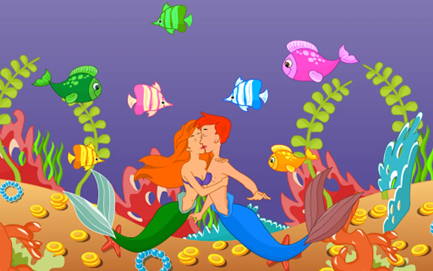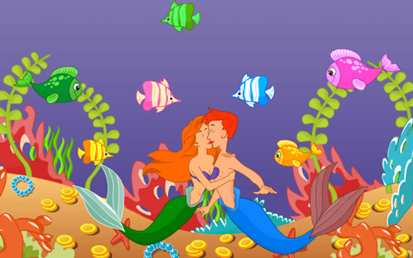 Touch and make mermaid kiss her guy and increase the kiss meter before the time runs out. Remain normal when a warning appears on the screen. Have fun!
