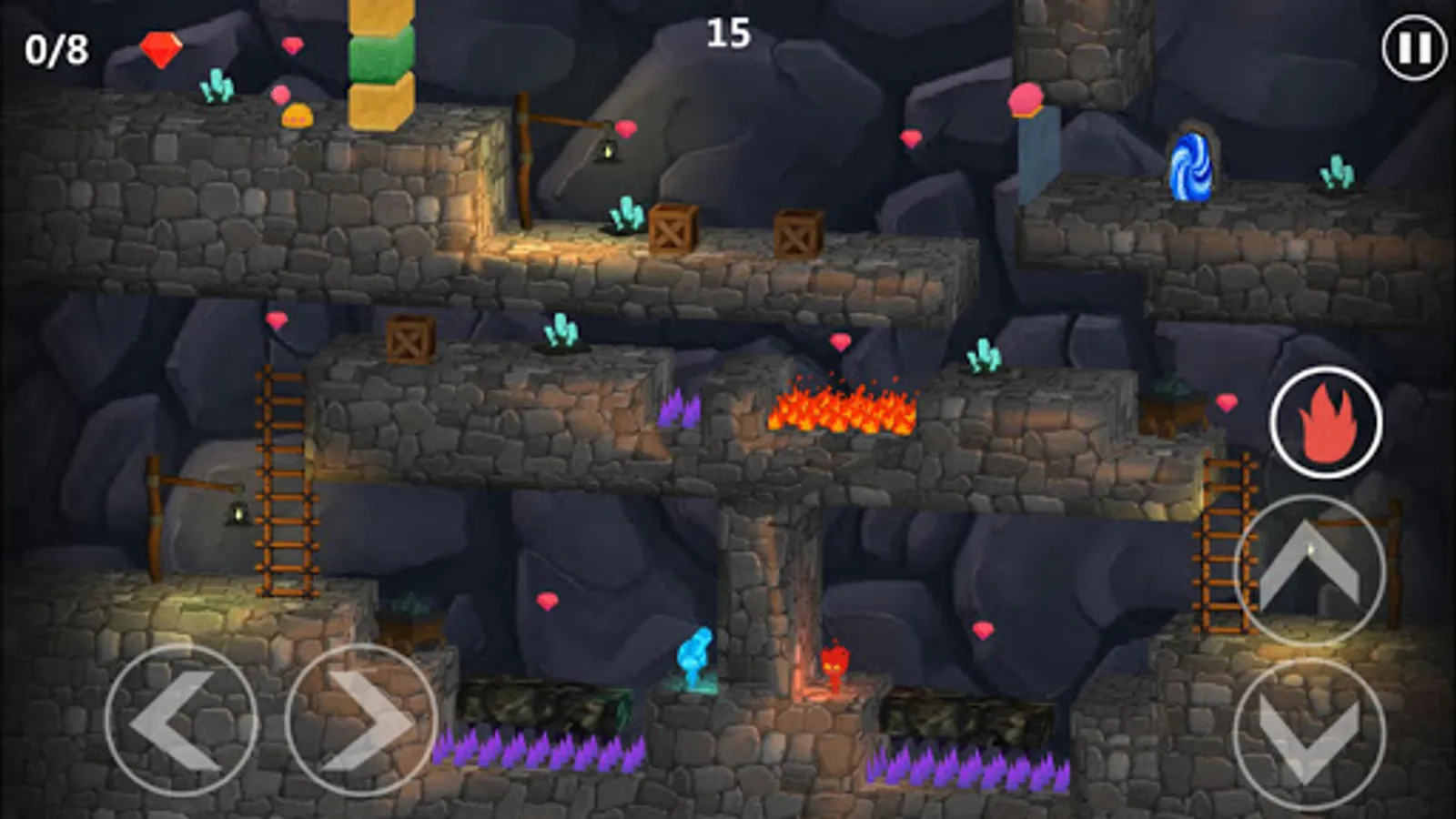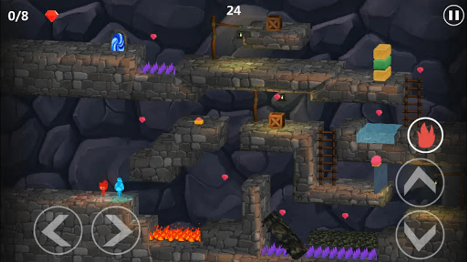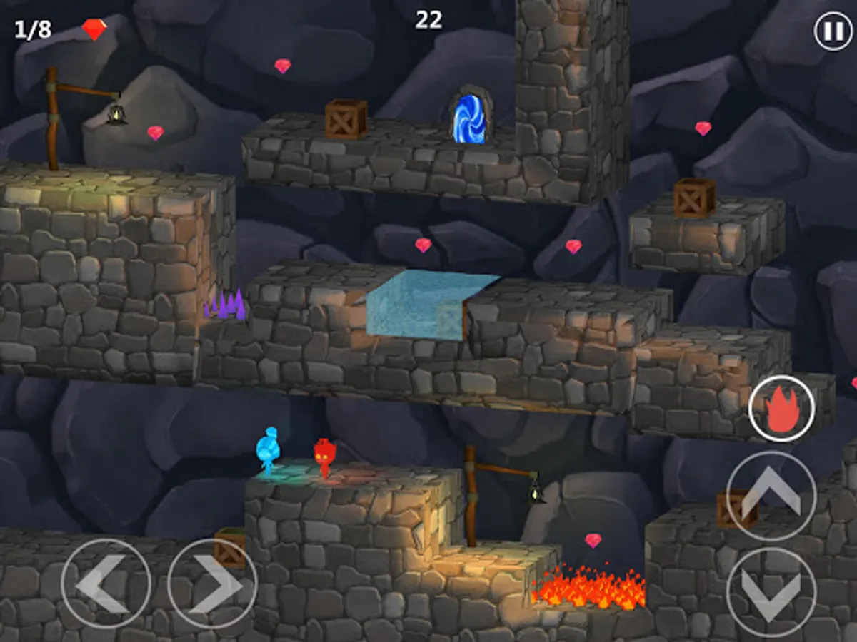 Interesting brain games, boys and girls, are transformed into fire elves and water elves. All you have to do is collect the stones that represent the respective elements. Cleverly untied various organs and successfully reached the exit.