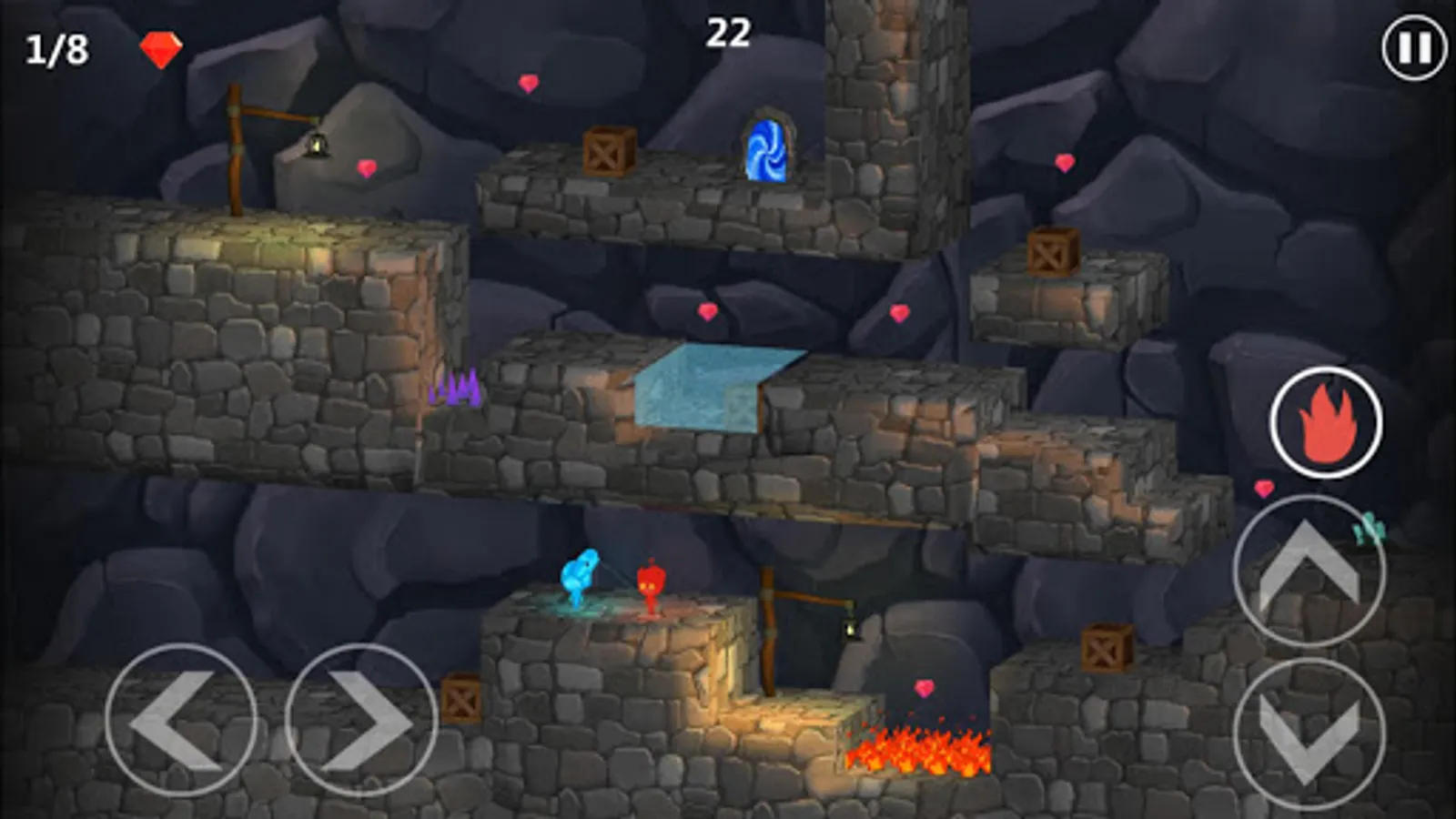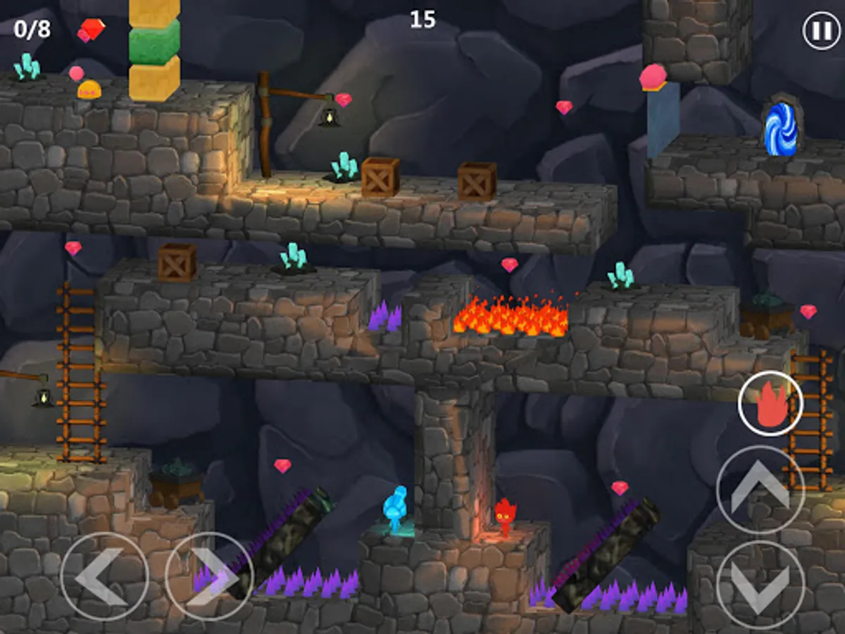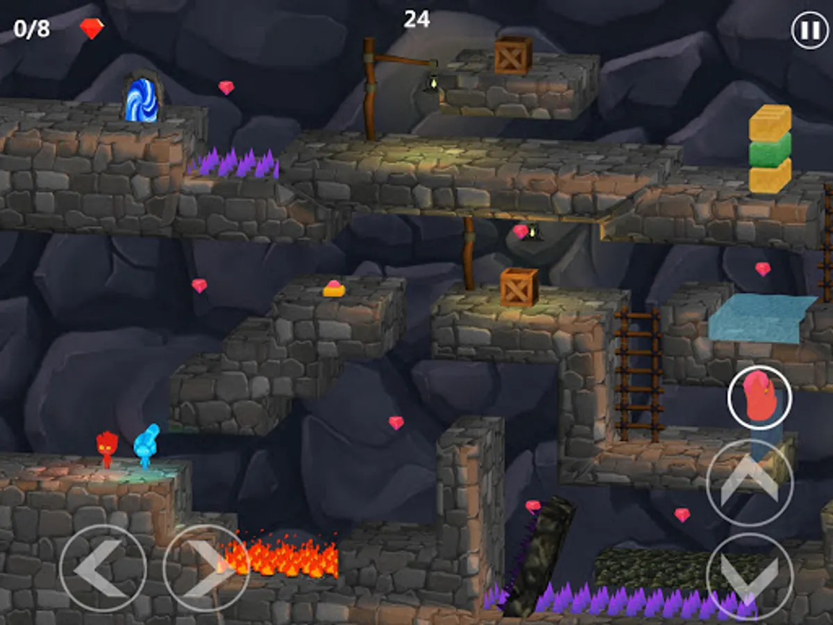 Interesting brain games, boys and girls, are transformed into fire elves and water elves. All you have to do is collect the stones that represent the respective elements. Cleverly untied various organs and successfully reached the exit.