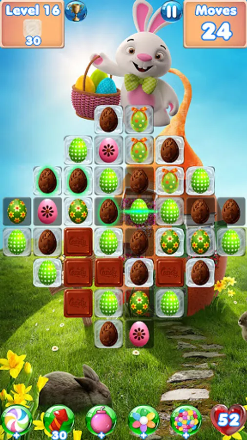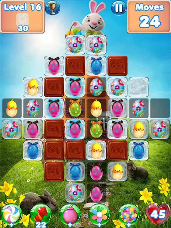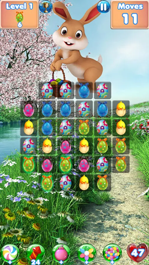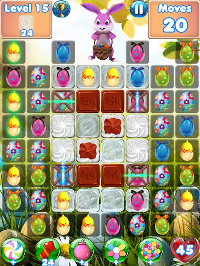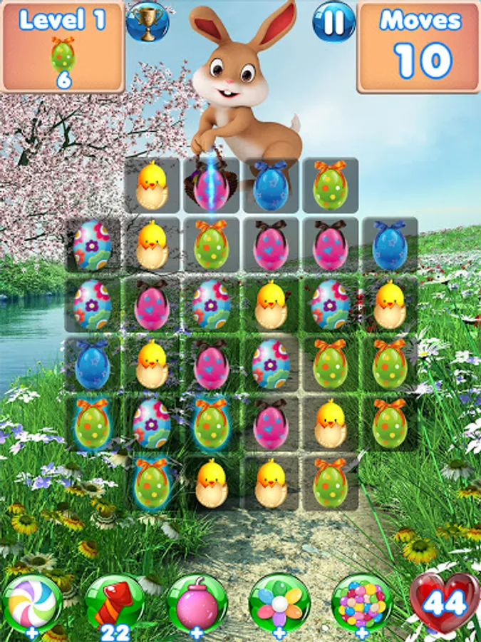 A match 3 game with bunnies, chocolate candy, and Easter eggs. Just in time for Easter but you can enjoy it all year long. How many Bunny Trophies can you collect? Be the best on the leaderboard!