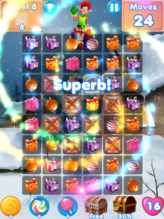 ❄️Play Christmas Games Puzzle MATCH 3 GAMES free! So much ice in this match three game . Get a Christmas trophy after after every level! How many can you collect! Can you be the best in all the winter land!