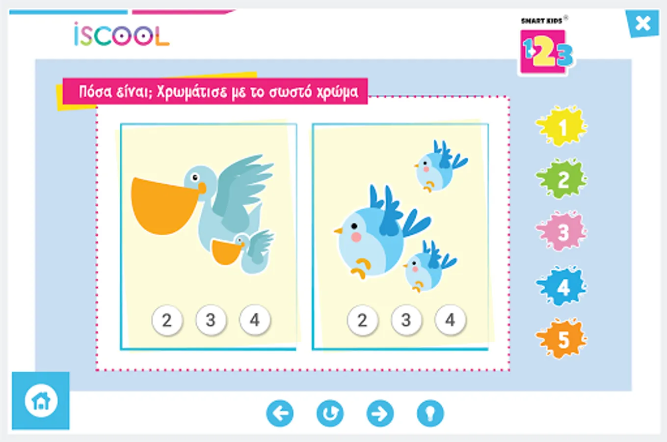 The interactive nature of the application pushes the child to be actively involved in the construction of mathematical knowledge, thus promoting in-depth understanding and acquisition of mathematical concepts without enhancing memorization and mechanical thinking. The iscool educational team, using innovative, developmentally appropriate techniques, has managed to meet the educational needs of every preschool student. The graded difficulty of the activities allows each child to actively participate and benefit from engaging in this application.