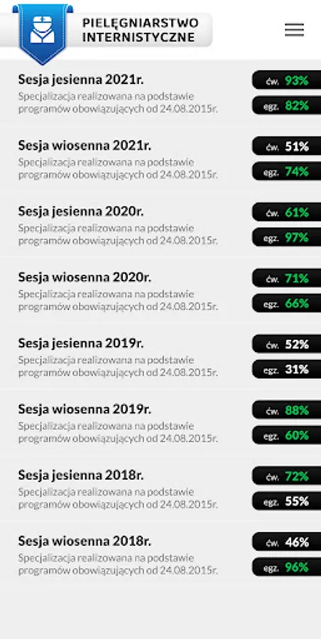 The application is designed for nurses and nurses preparing for the internal medicine exam. The answers to the questions are prepared by nurses specializing in internal medicine. You will learn and consolidate the questions in an easy and fun way in the practice mode, as well as you can try your hand at the exam mode. Thanks to our application, the tests are always with you and you can use every free moment to study.