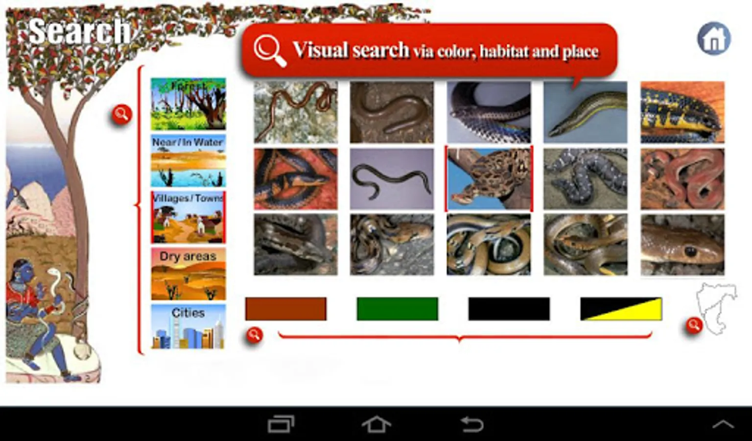 • Find snakes by habitat, color and state
