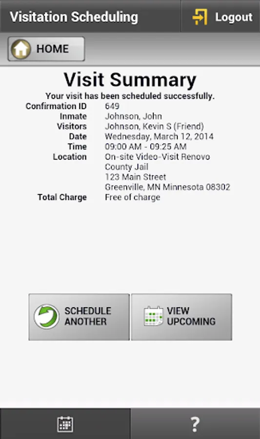 This app lets you sign up and plan visits with people you care about at participating facilities using an Android device. You can also cancel planned visits and update your account info.
