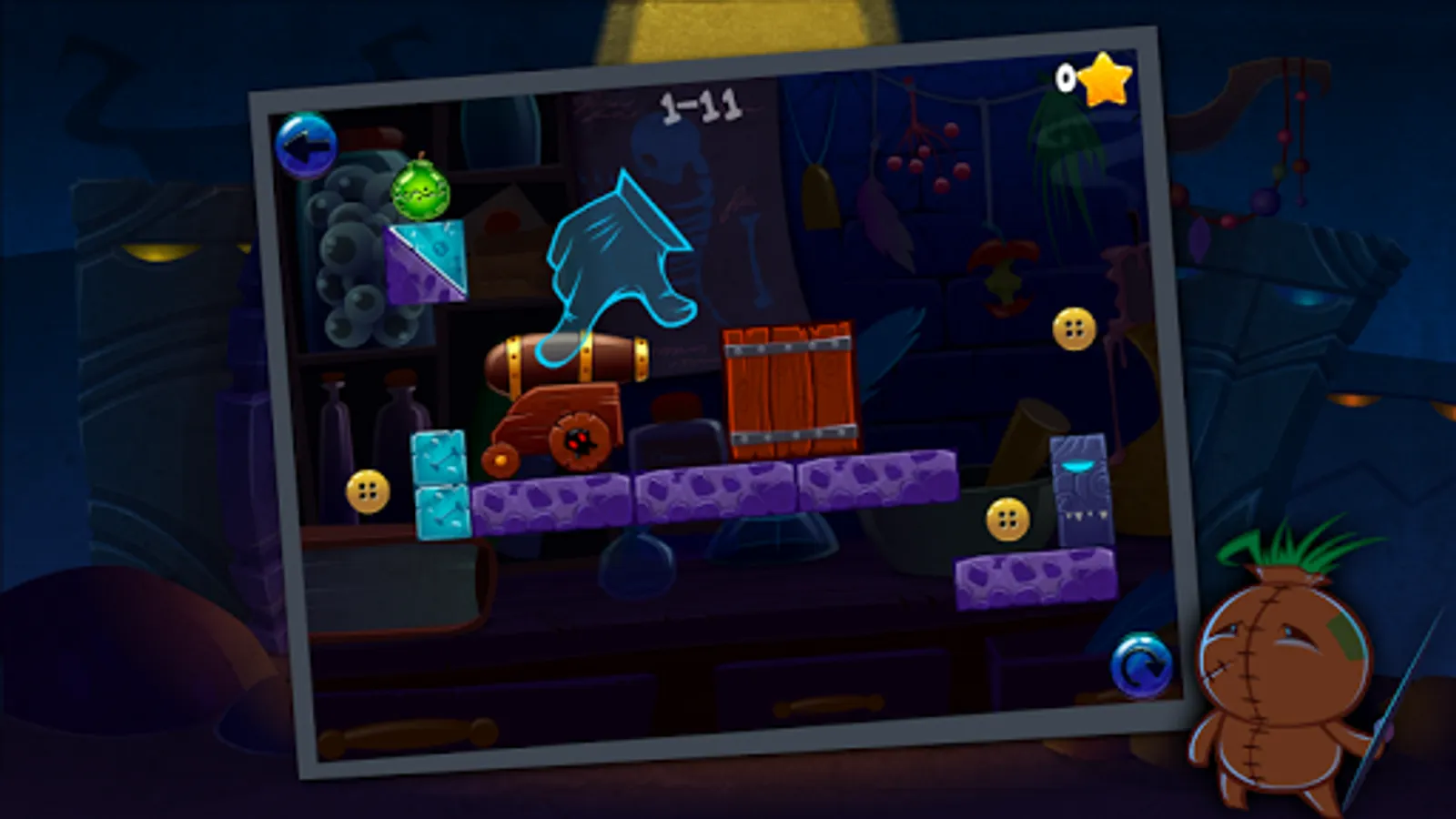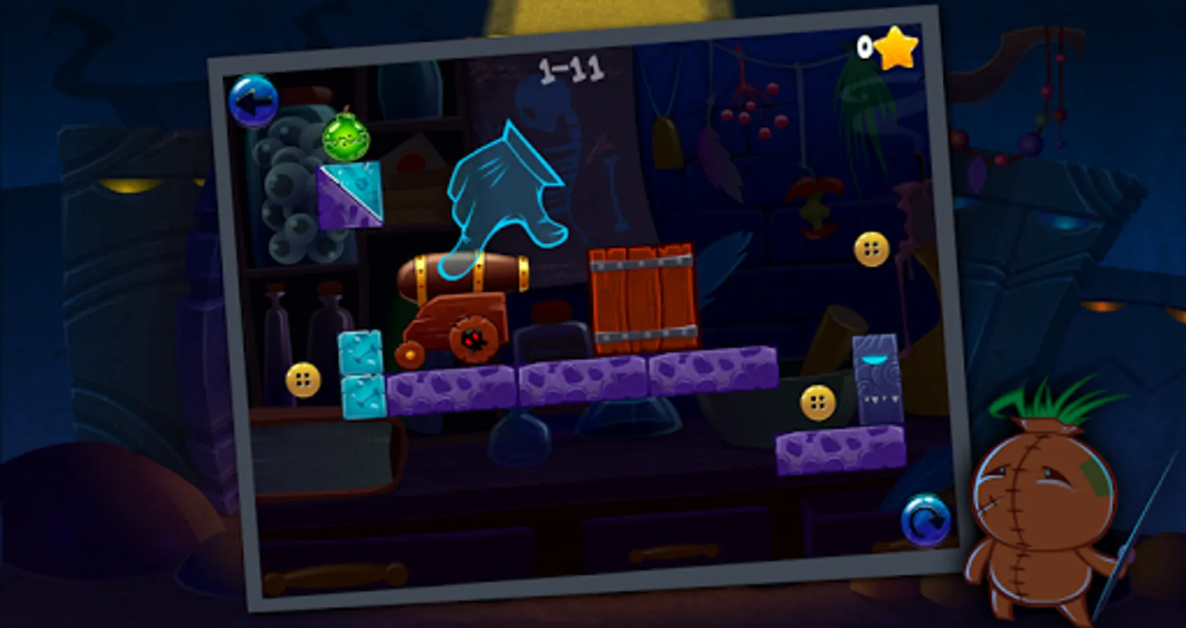 Help voodoo dolls to complete all levels and return all stolen buttons.