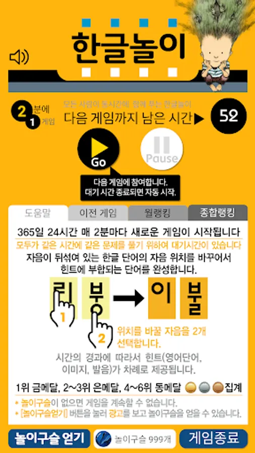 A game that changes the position of consonants in Korean words to create words that match the suggested hints.