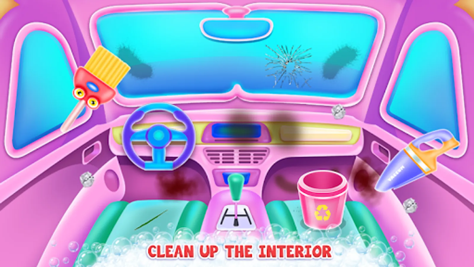 Wonderful 3 cars that have animal's shapes are going to be your customers in this car game. Your car wash shop has high standards and your services are the best. So, this cleaning game has the main goal to learn you how bad exactly the cars looks like after some races and why they need to be reconditioned. The piggy car is coming first, and you will begin with the interior cleaning because once you finish this part you see the way the rest of steps evolves. Take the trash into the garbage can and offer attention to those speckled walls that need an immediately washing. Use the vacuum cleaner for leftovers. Besides all of that, you have to take care of the chairs that are broken as well. Apply the same treatment for the rest of the misplaced things and replace the windscreen. Now you have the exterior cleaning, so use the tools you have and try to make each task in the way it should be done. Wet it, add shampoo, rub the dirt and dry it all. Wash well the smutty window and use the tools you've got at your car washing magazine. Turn on the big device that will help you with the exterior and let it work until the car is all cleaned. Then dry it out and that is all that needs to be done. Now that you know these steps you might apply them to the rest of the cute cars that left in your garage, the elephant and the tiger car. Make sure you execute the treatment right because if you did it well the first time you don't have to worry.