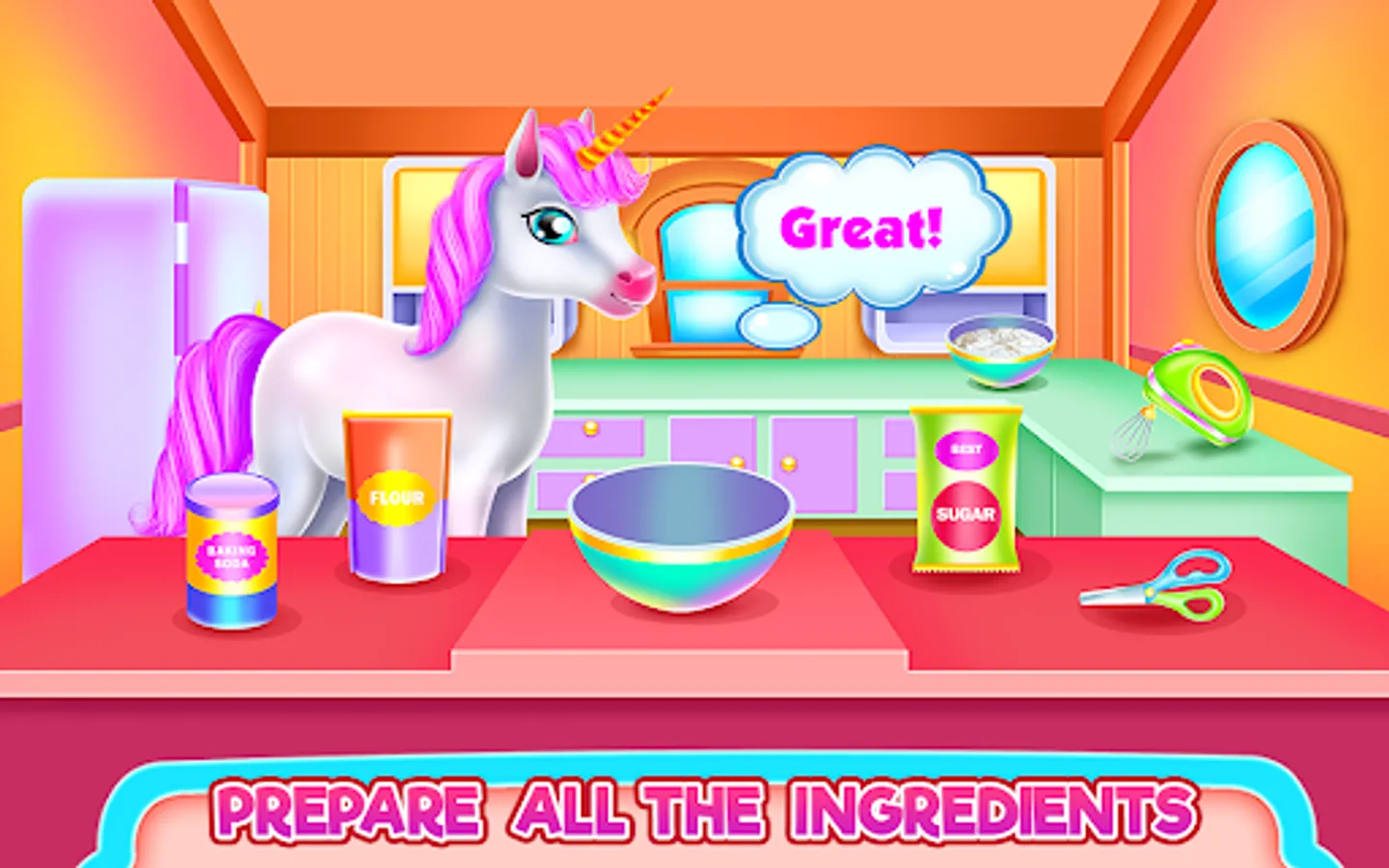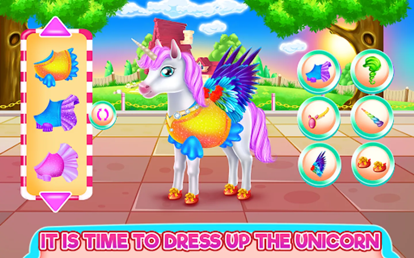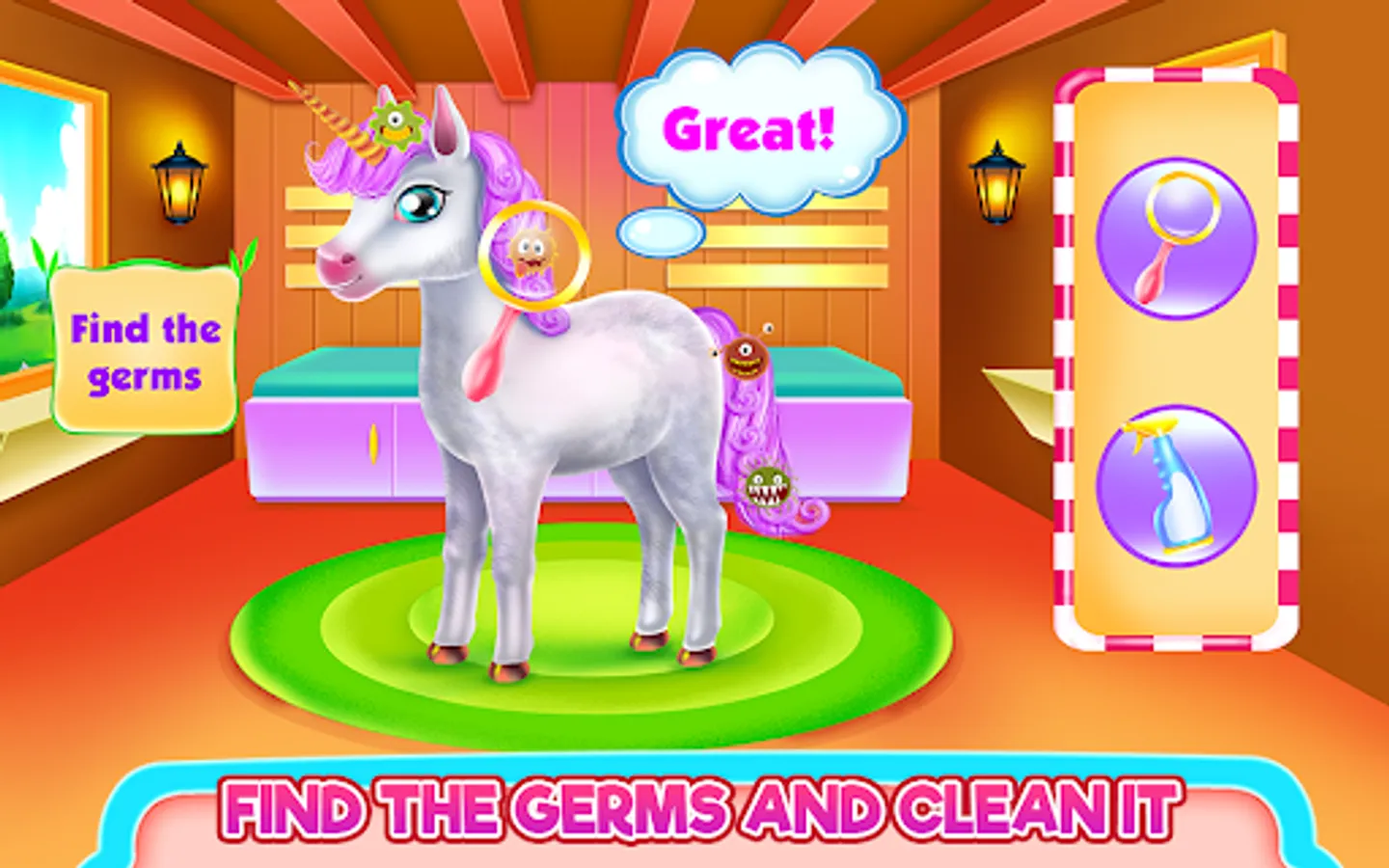There's a great way to test your abilities as a caretaker and that is by playing our new unicorn game, in which you will definitely have a lot of fun. Not only that you get to nurse him, but you will try something in the kitchen and in the hairstyling area. First of all, you will start the game with a little pampering. Give him a bubble bath and make sure you clean his dirty hair. After the washing, you must take the unicorn to the hair salon where you will combine natural ingredients to create a special mask. Apply it and then refresh his main color. You might also want to cut the extra hair and arrange it with a suitable hair device. Now that he is all dolled up is time for cooking. Get the dough for cupcake done and decorate it with colorful details. Feed him and fulfill his wishes when it comes to food. Now you don't have to be shy when it comes to dressing up. So, add bold colors and make this unicorn a fashion item. Combine the wardrobe we have and assemble a lovely outfit that will highlight the cool hairstyle he just got. Use your creativity and add pretty accessories to complete this vogue look of the unicorn. Do your best to accomplish all the given responsibilities and have fun by learning how to take care of a sweet animal.