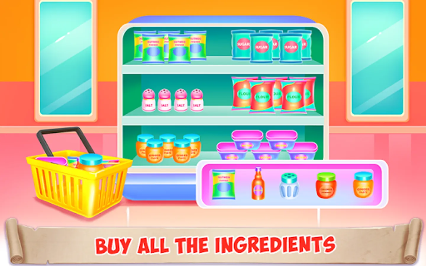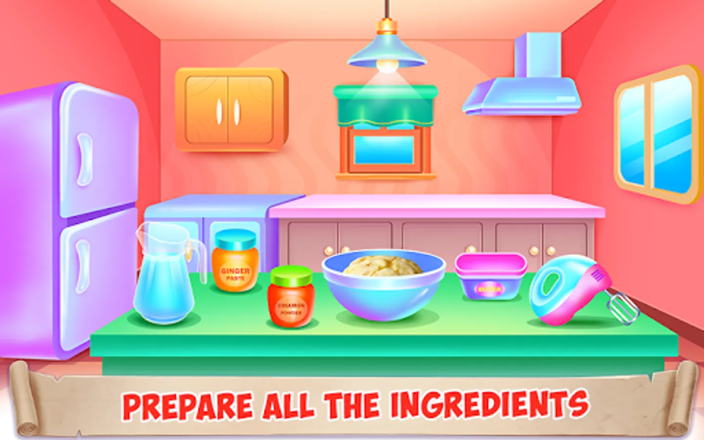 Come and see for yourself how this cooking game is going to give you a great time spent together with us and even better experience as a virtual baker. This time you will find out the required ingredients for the gingerbread cookies and also the steps that must be accomplished for this recipe to work. That flavored gingerbread cookie will be build during four main phases: purchasing the needed items, cleaning the kitchen, cooking the sweets and in the end decorating them. So, take a basket and put in all the required ingredients for your recipe. Find the items from the shopping list, pay for them and come back to the kitchen where another challenge awaits. Here you will prepare the place to be a proper environment for a good baking. Perform cleaning activities and make sure that each part of the kitchen will be washed. The floor is a mess and you must collect the garbage as well as the wet spots. There is spider web spread all over and the windows and the fridge are full of dirt. Next, you will use the purchased items and follow the steps to make the dough for the cookies. Combine ingredients and mix them together and don't forget one ingredient from the recipe because it could ruin your bake. Use the special shapes and get the cookies done. Now you only have to decorate them with thematic details. Find your inspiration and don't be afraid to try new things.