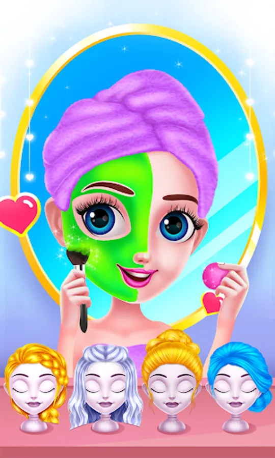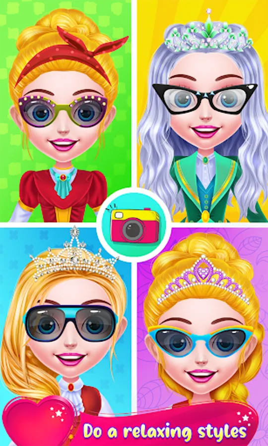 You must join this hairstyle game and help our princess girl redefine her look. Have fun and find a suitable look for her while you pamper her. Follow the instructions for all levels and take care of her properly. Start the day with the spa session where you will prepare her a refreshing bubble bath. Wash her hair with shampoo and her body with soap then you can help her dry for the next step. You could spend some time together in the playroom, but don't forget to let her get the sleep she needs. Continue the game and get to the dress up where you could pick her a nice outfit and hairstyle. Combine different styles for her outfit and try to match a cute hairstyle too. You should also take care of her face. Apply a moisturizing mask and make her skin glow. The makeup step comes next and here you will highlight her beautiful features. You will have to get rid of the pimples and arrange her eyebrows. Now add the makeup and move on to the hairstyling. There are multiple devices you could use to customize the way her hair looks. You can choose the curly, straight, or braided look to match her future outfit. Combine colors and pieces of clothing to find the style that matches her taste. Finish her aspect with pretty accessories and great shoes. A pair of sunglasses, a headband, or even a bow can make her look fabulous. Have some pictures taken to capture her great transformations.