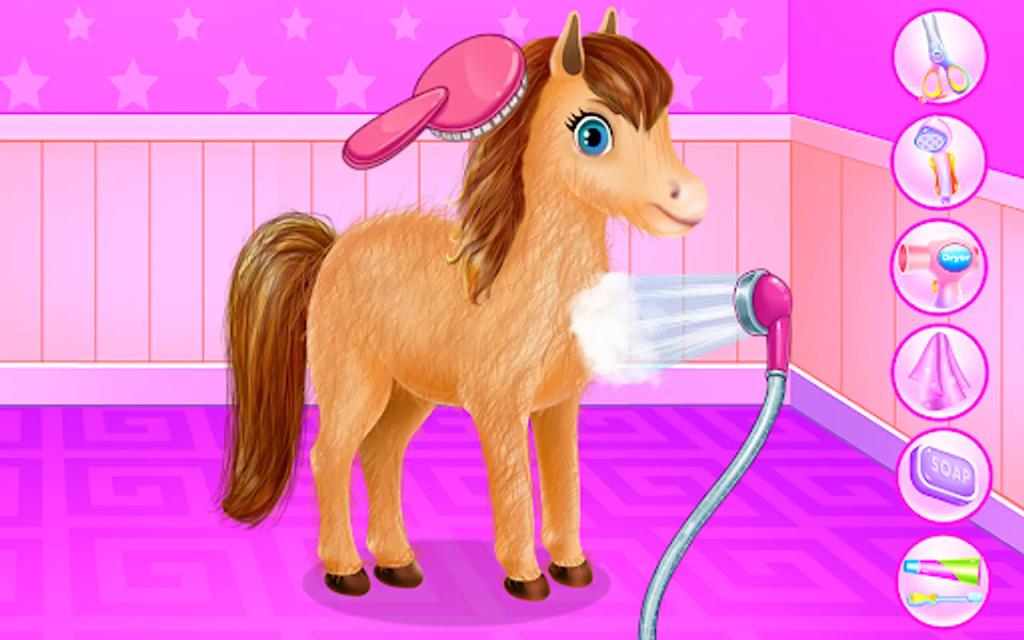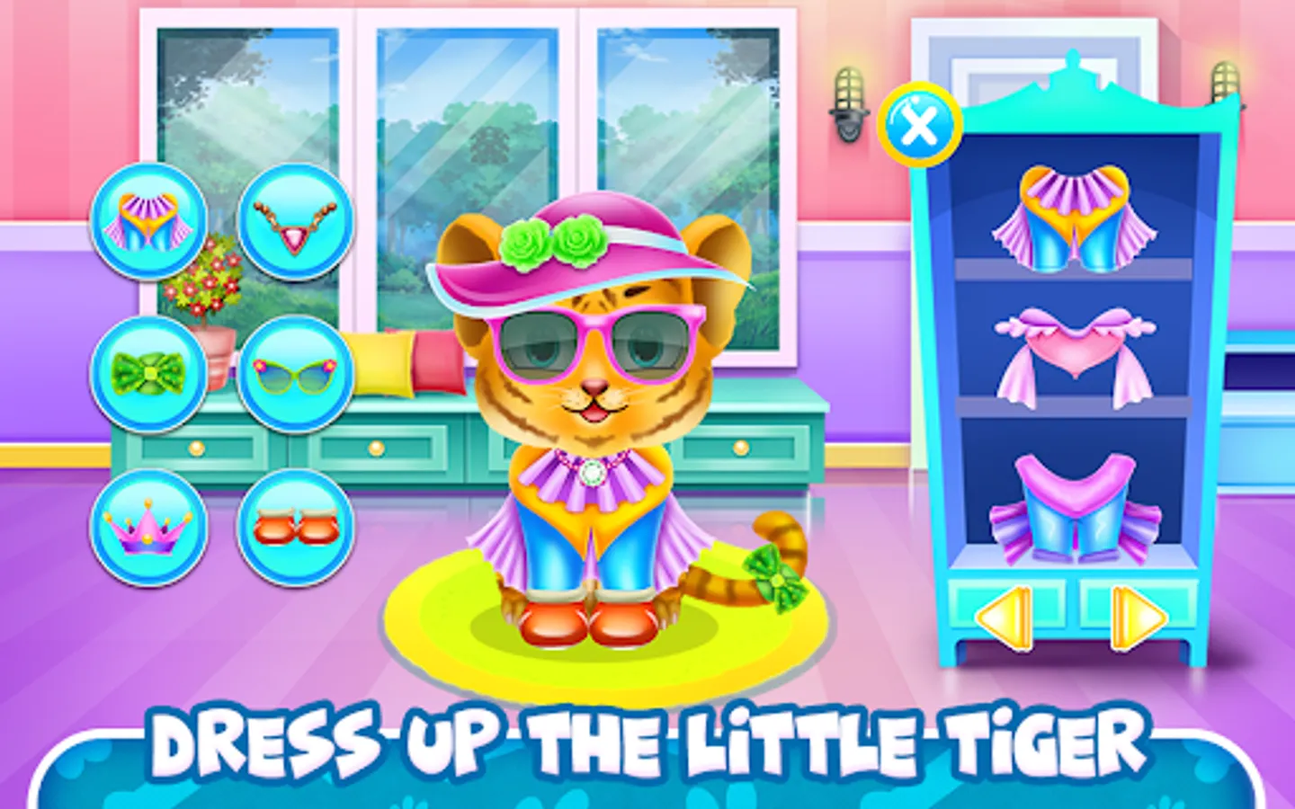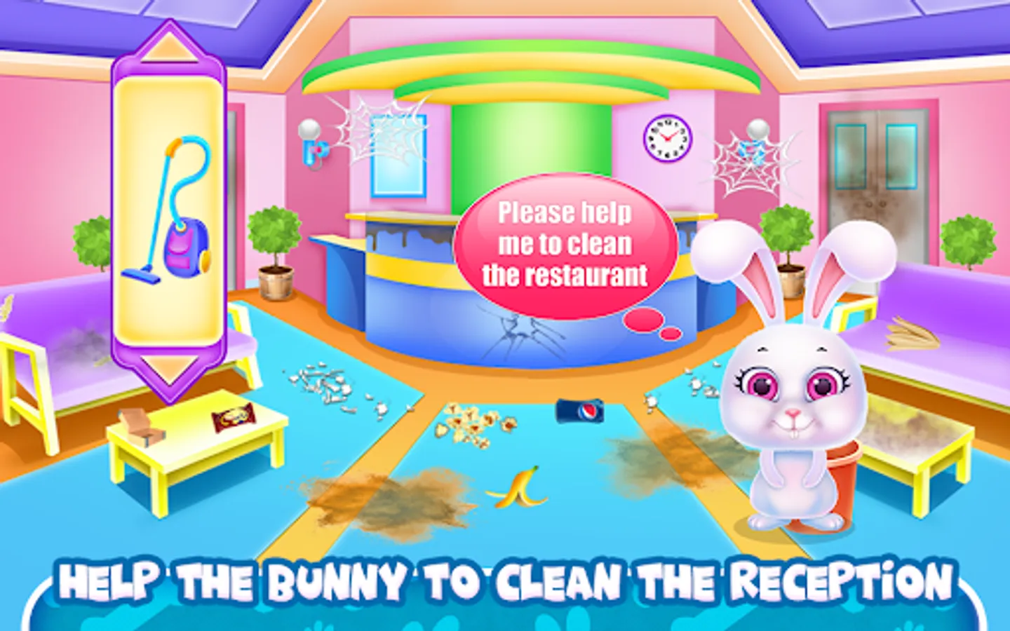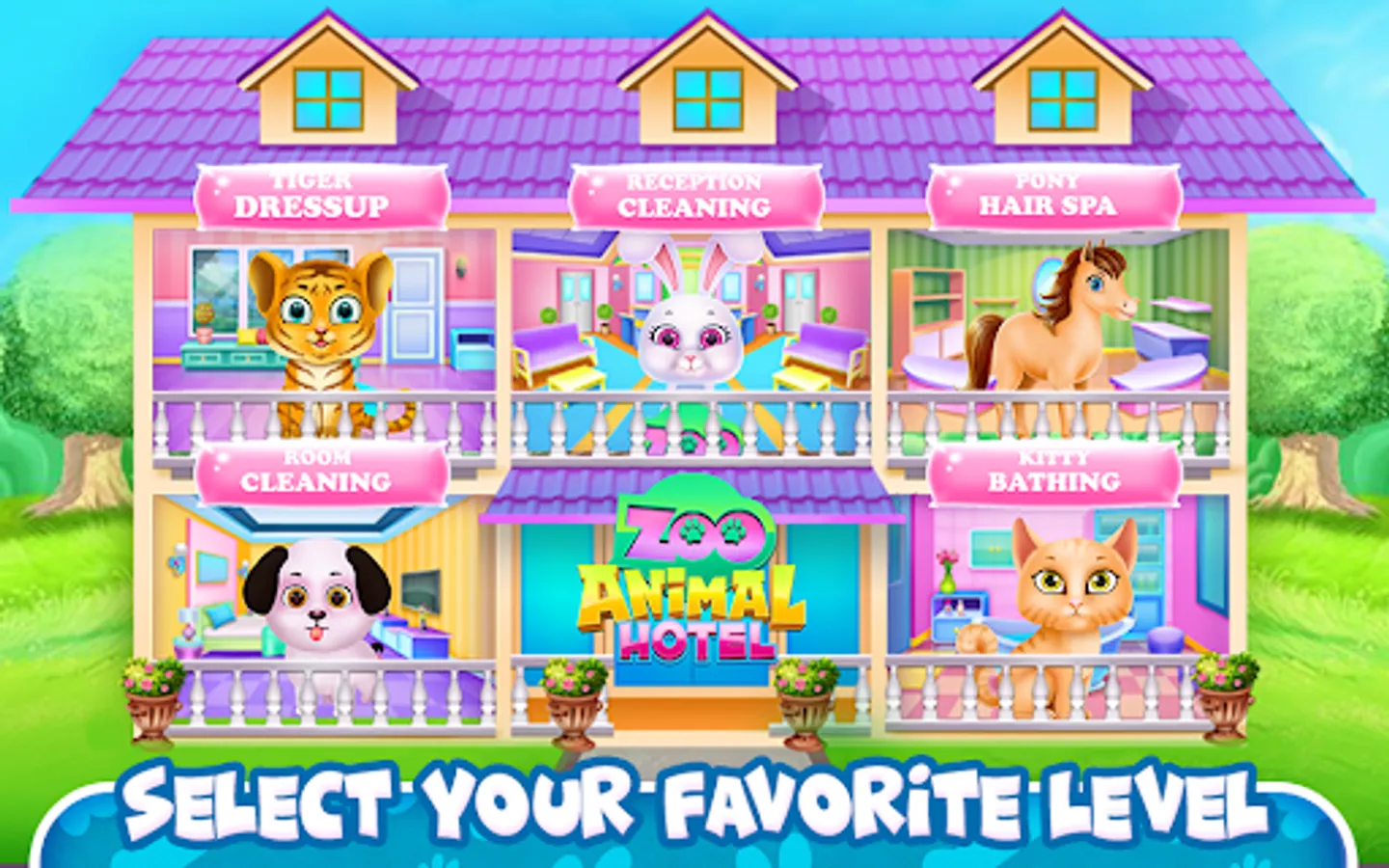 Have a lovely experience with this cleaning game and try to make this animal hotel appear as a presentable place for your future customers. A good manager handles any problem that might come across in his building and if you want to be suitable for this job you need to fulfill each challenge that your animals prepared. You could begin with the tiger dress up or in any order you prefer, but know that either one you start with you should complete all of the tasks. Create an innovative look for our little tiger and don't be afraid to use crazy accessories like colorful hats, big sunglasses or anything you think is appropriate. There will be two phases in which you will clean the rooms and the reception. Try to perform quality services and finish the housekeeping along with the dog and the bunny. Throw the garbage, clean the floor and wipe the dust, then move to the walls that need a serious rubbing. Swipe the dust, have the floors cleaned up and handle the rest of the disorder. The next challenge comes when you will take the kitty a bath and here you will be having fun with the shampoo and the conditioner. Arrange her fur and make it all glamorous again. Complete the trial with the pony's care and take him into his spa treatment. Cut his hair, wash him, and apply a new color to refresh him. Once you finish all these tasks you should be proud of your zoo animal hotel.