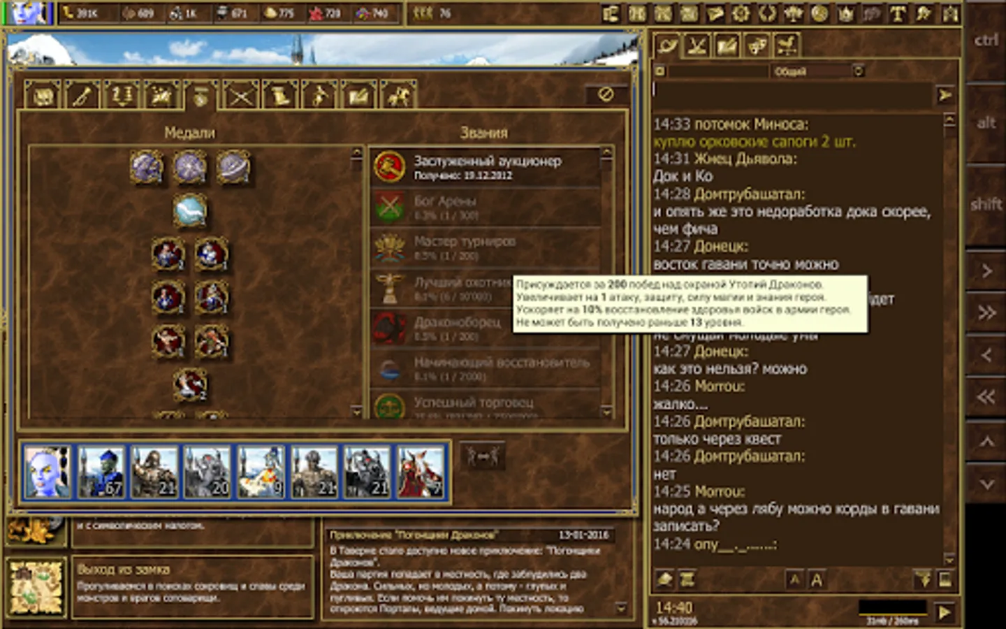 This is a tactical battle strategy. These are adventures on a huge map and the confrontation of heroes, clans and factions; capture of the territory and siege of castles; hunting, dueling, team battles and tournaments.