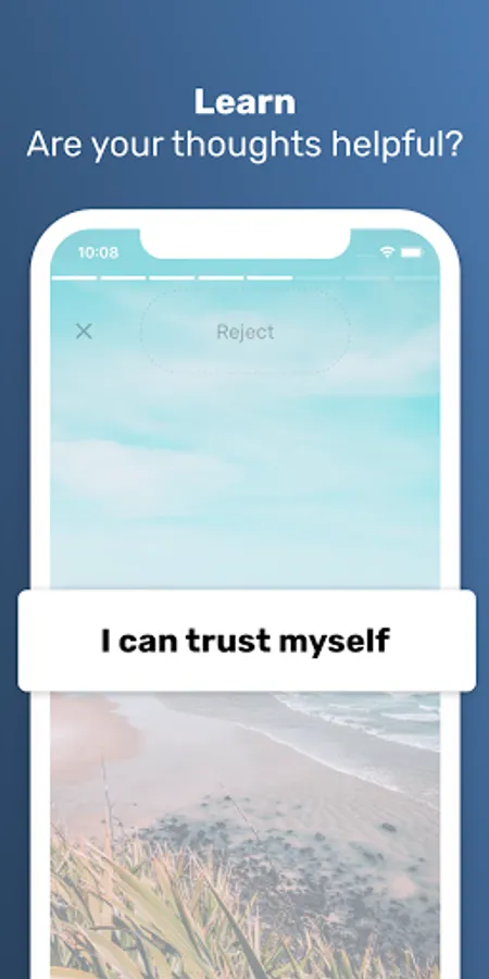The basic task in the app is simple - you will be presented with thoughts. If the thought promotes negative self talk - throw it away by dragging it on-screen. If the thought promotes positive or neutral thinking, accept it by dragging it towards you.