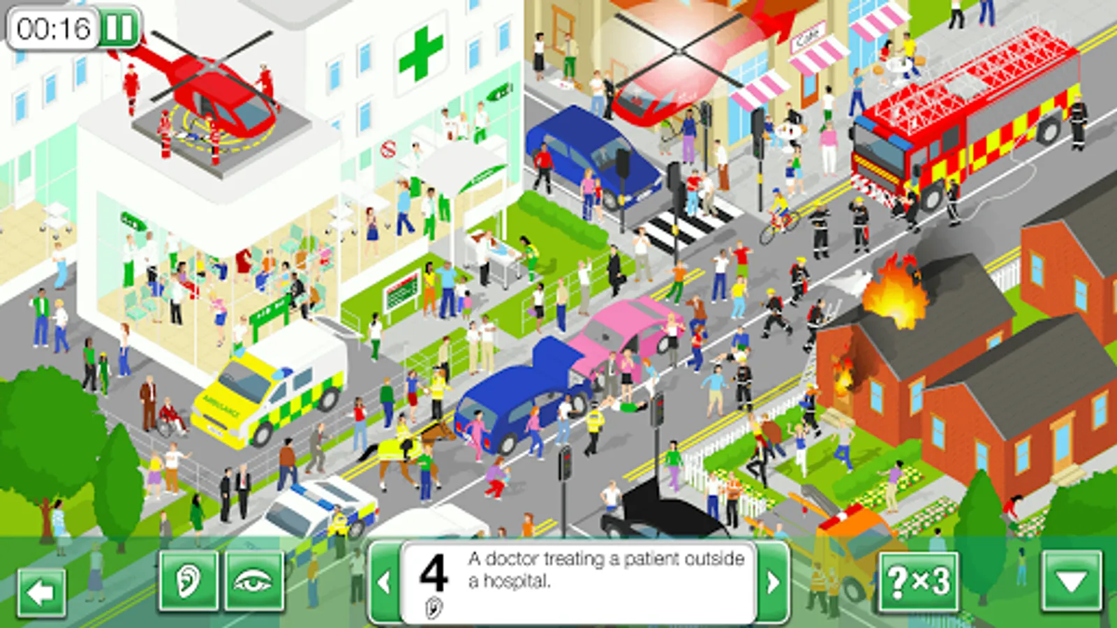 The BIG Picture app, from Richmond, is a game which helps students learn and increase their English vocabulary. Students compete to top the leader board as they race against the clock to find each action or object on their list. Each level contains a choice of six themed pictures, each with a simple and fun design, audio and animation.