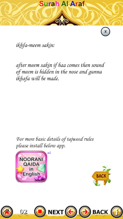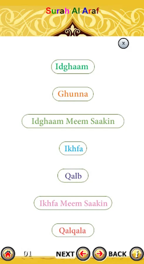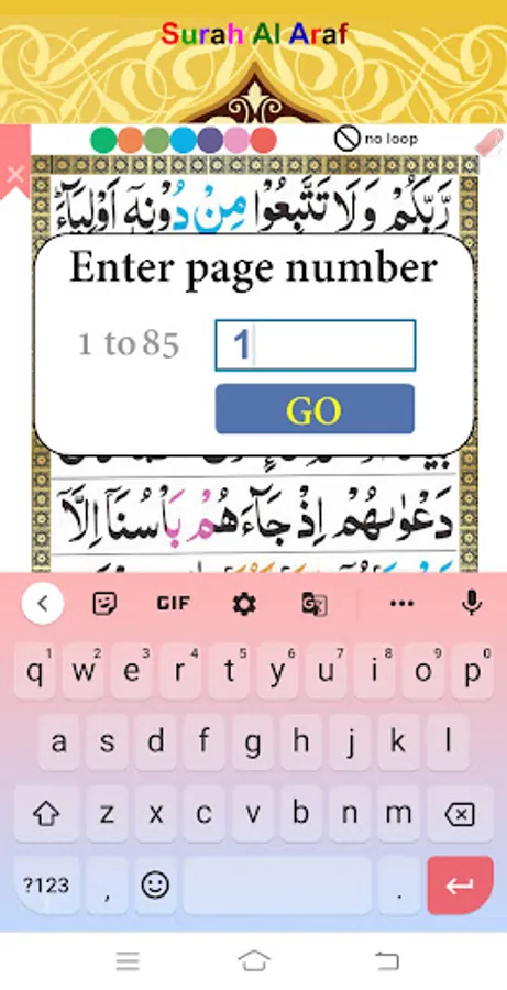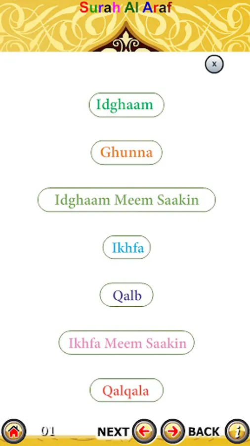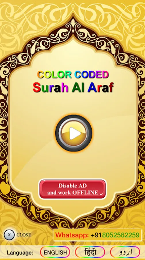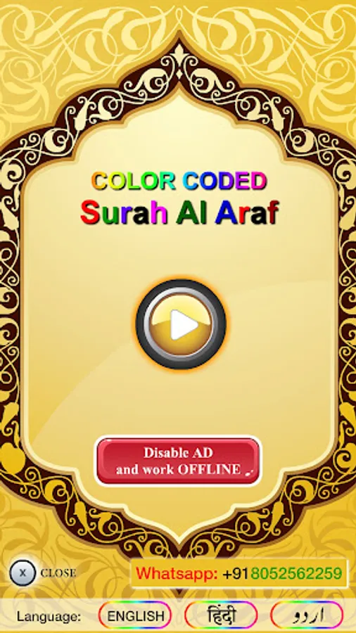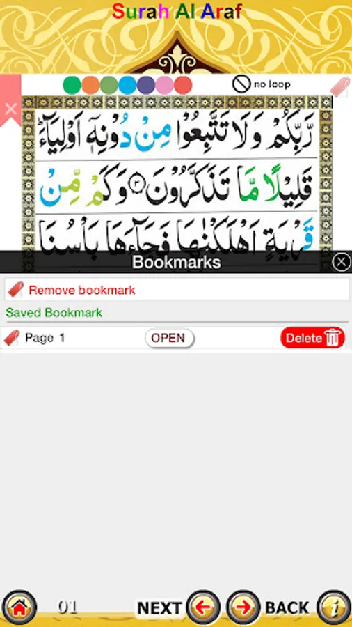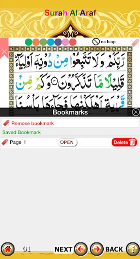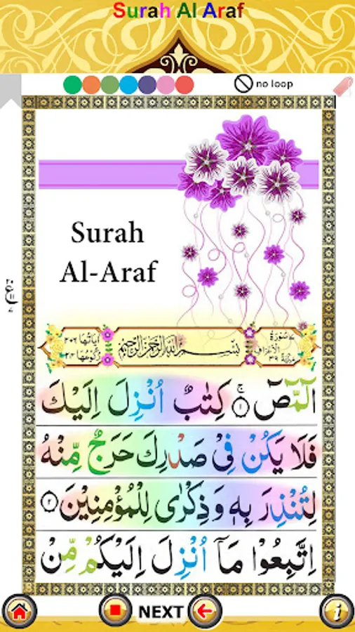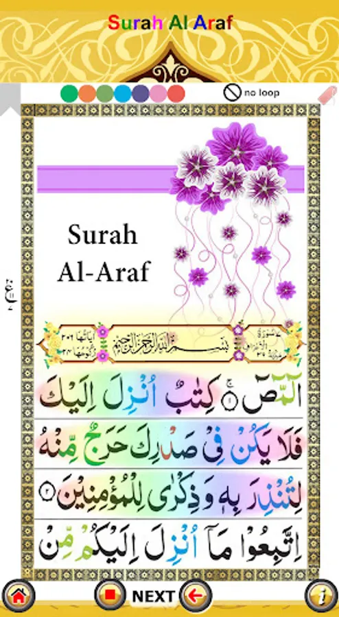 It is Surah Al Araf with Audio in color coded Arabic big font. App is with audio.