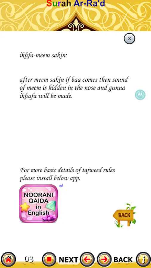 There are 43 ayat in this Surah and it is ‘makki’ though some Mufassireen (those who have written commentaries of the Holy Qur’an) say that the last verse of this Surah was revealed in Madinah. In fact, some even go as far as saying that the whole of this Surah is ‘Madani’ except for two verses.