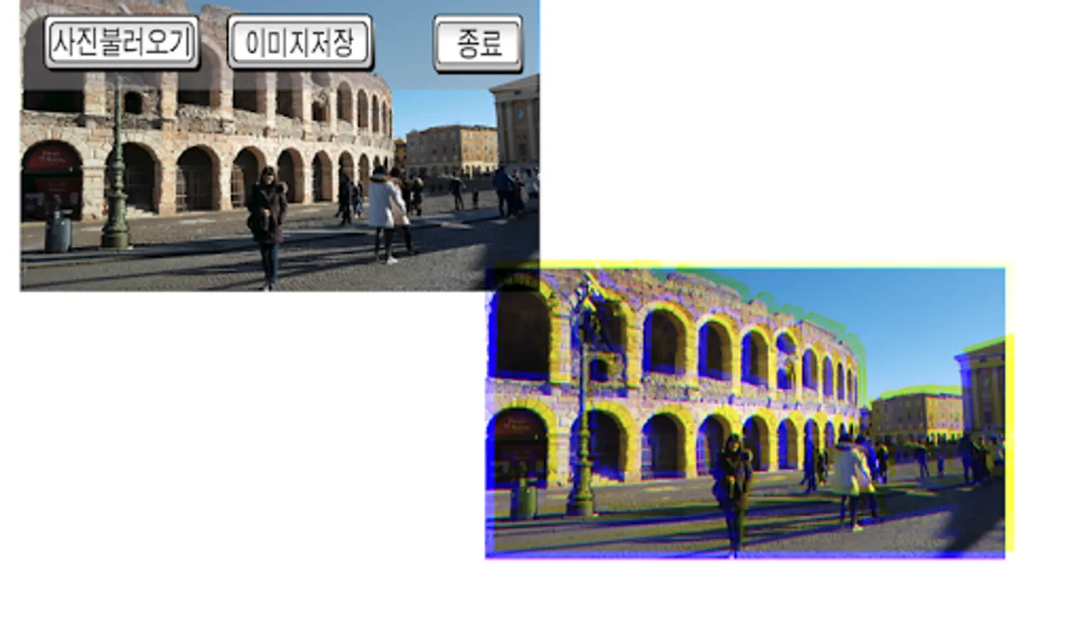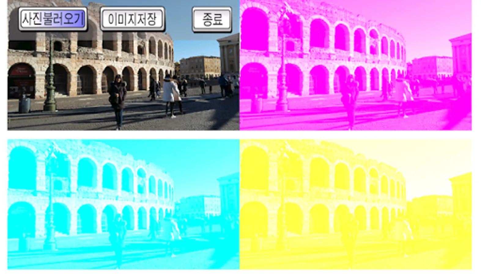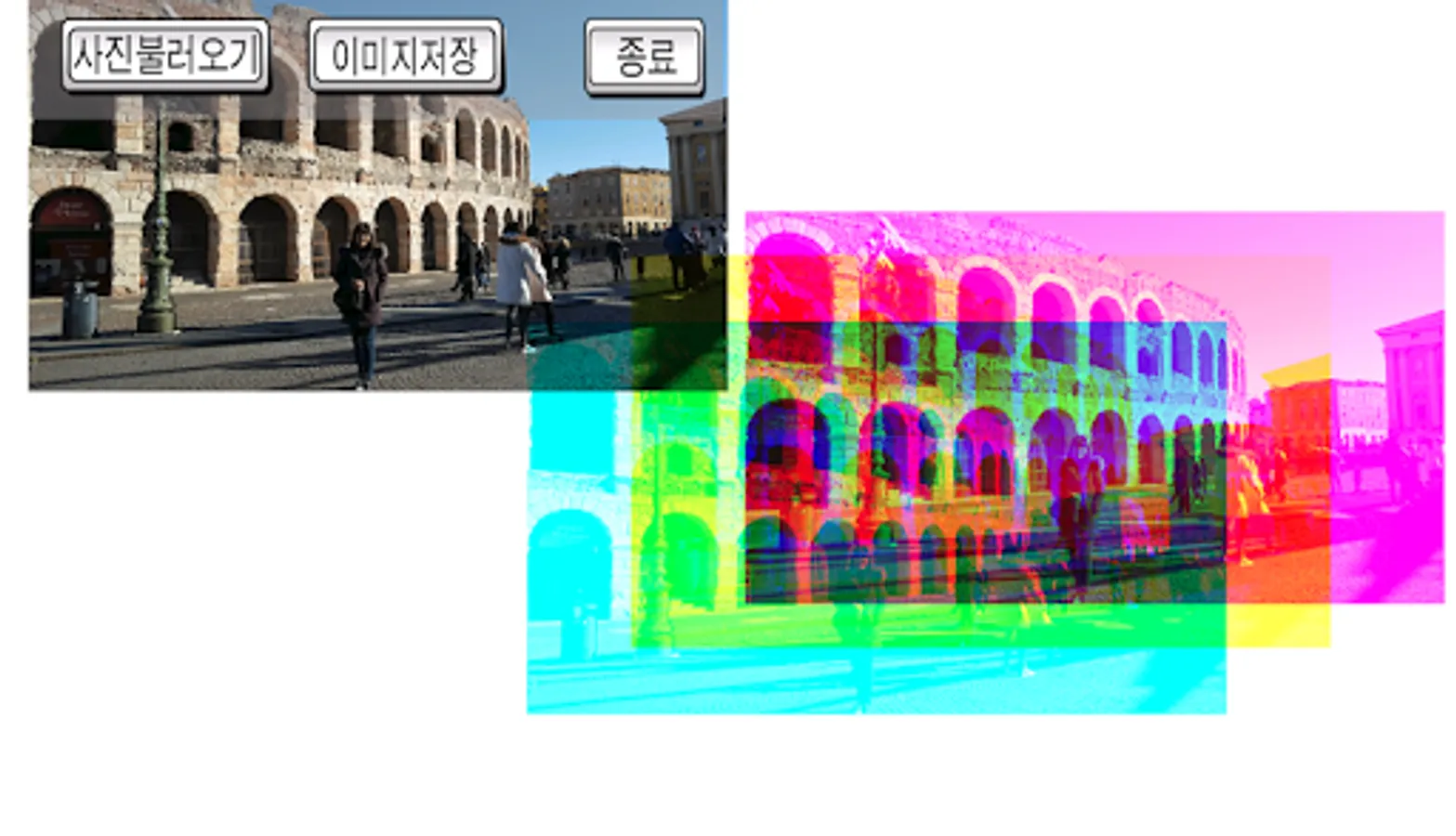 It automatically separates the pictures taken on the smartphone into three primary colors (Cyan, Magenta, Yellow).
