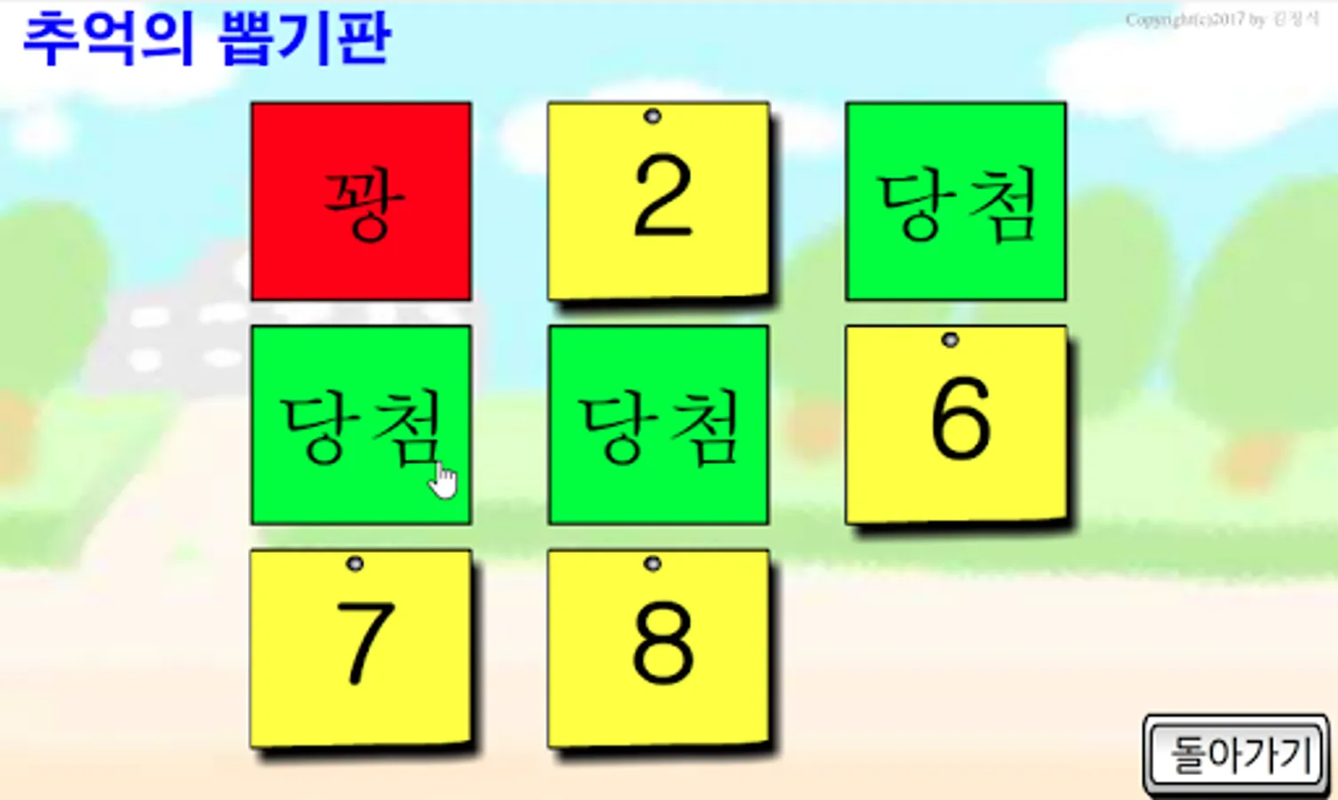 9 post-it will appear on the screen and students can see if they want to win or not by pressing the desired paper.