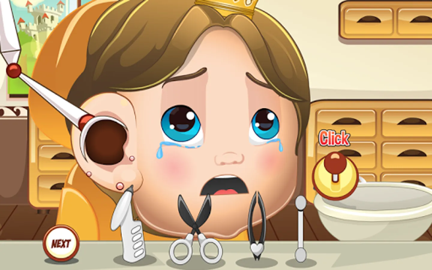 You have to be very careful with a prince and from time to time you have to take him at doctor because you don’t know how many problems might overcome if you are not paying attention at his medical condition. Well, in this doctor game you are treating a royal blood that has some ear issues that need to be looked at as quick as possible. Use that machine that would help you to go through in his ear and spot the problem so you’ll be aware of the severity of this situations and in this way you’ll know how to handle this type of problem. Clean the spot and then cut the tufts to help the prince hear better. After that you have to look at those ear warms that was hidden in that infected area. Get out the dirt with a specific stick, empty the amount of water that is in there and poke the pimples on the outside and inside of it.