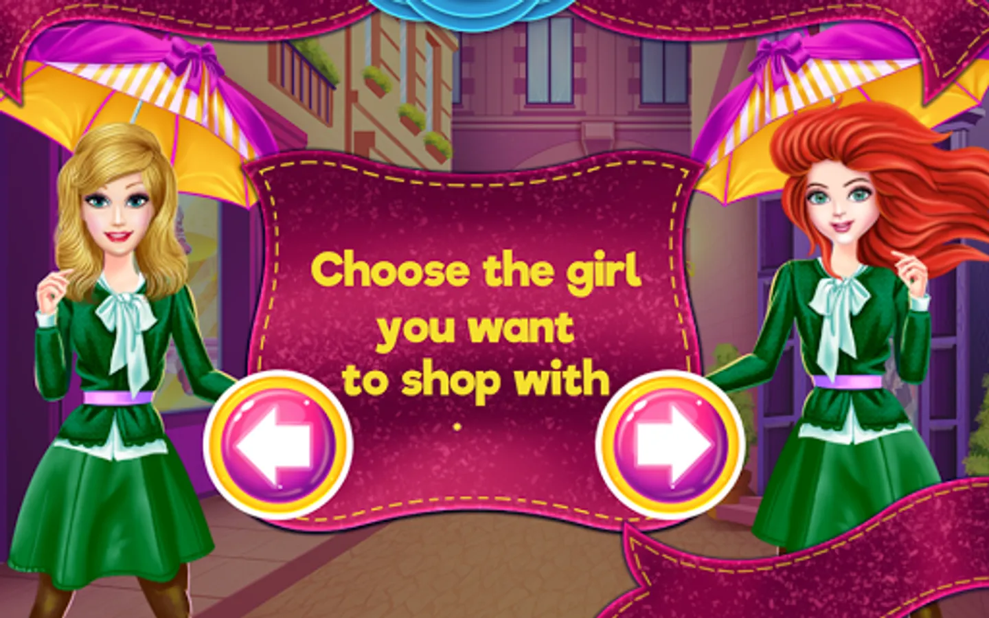 No rain is going to ruin the special shopping day for these two best friend, that why in this dress up game you come to be there as a shopping assistance. They have traveled to Paris for this occasion and you got to find a way to cheer them up a little bit because the weather is not helping at all. Make sure you understand all the request they have and why not? Begin the shopping session! Because there are thematic store with fancy and sophisticated tasted you must adopt a similar look as the people from there does. The sum of money you could spend will be shown for each girl in the right corner and the prices of the clothes will be on categories.
