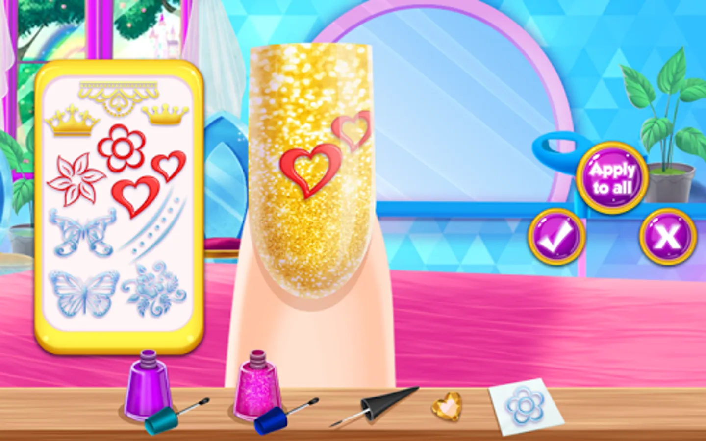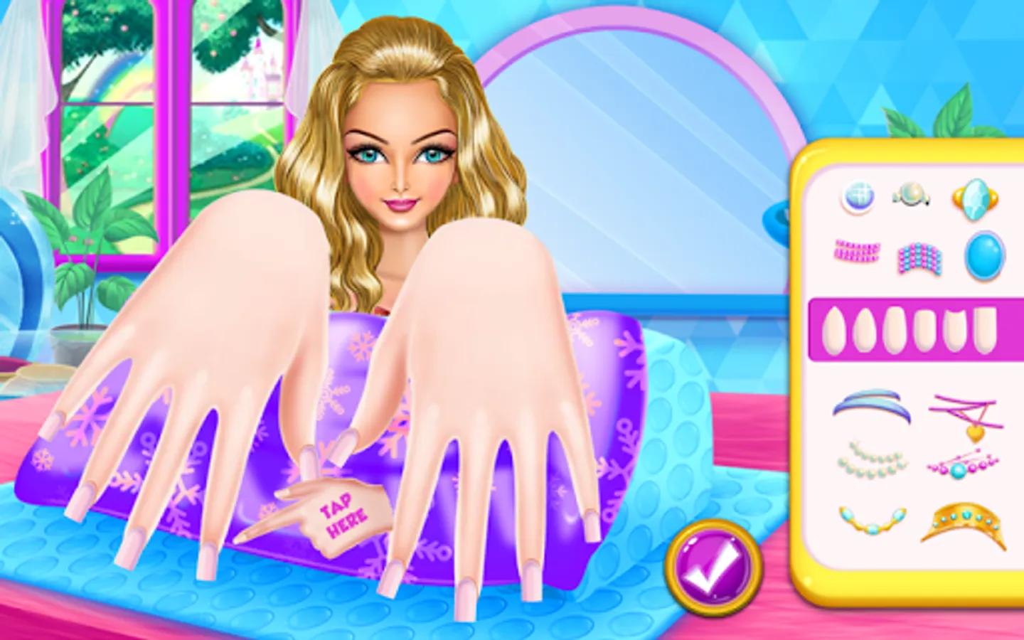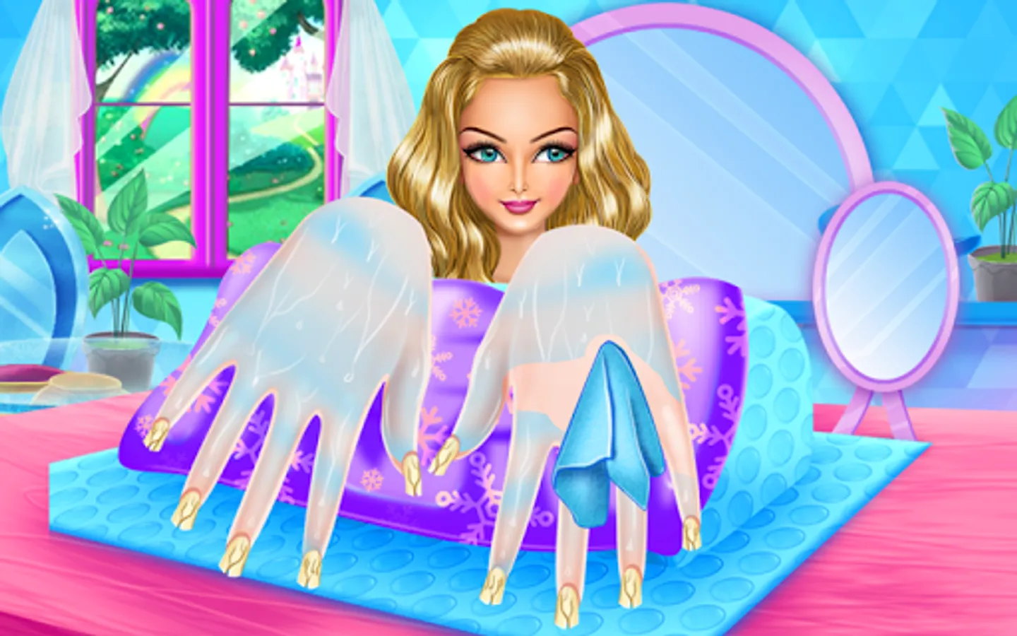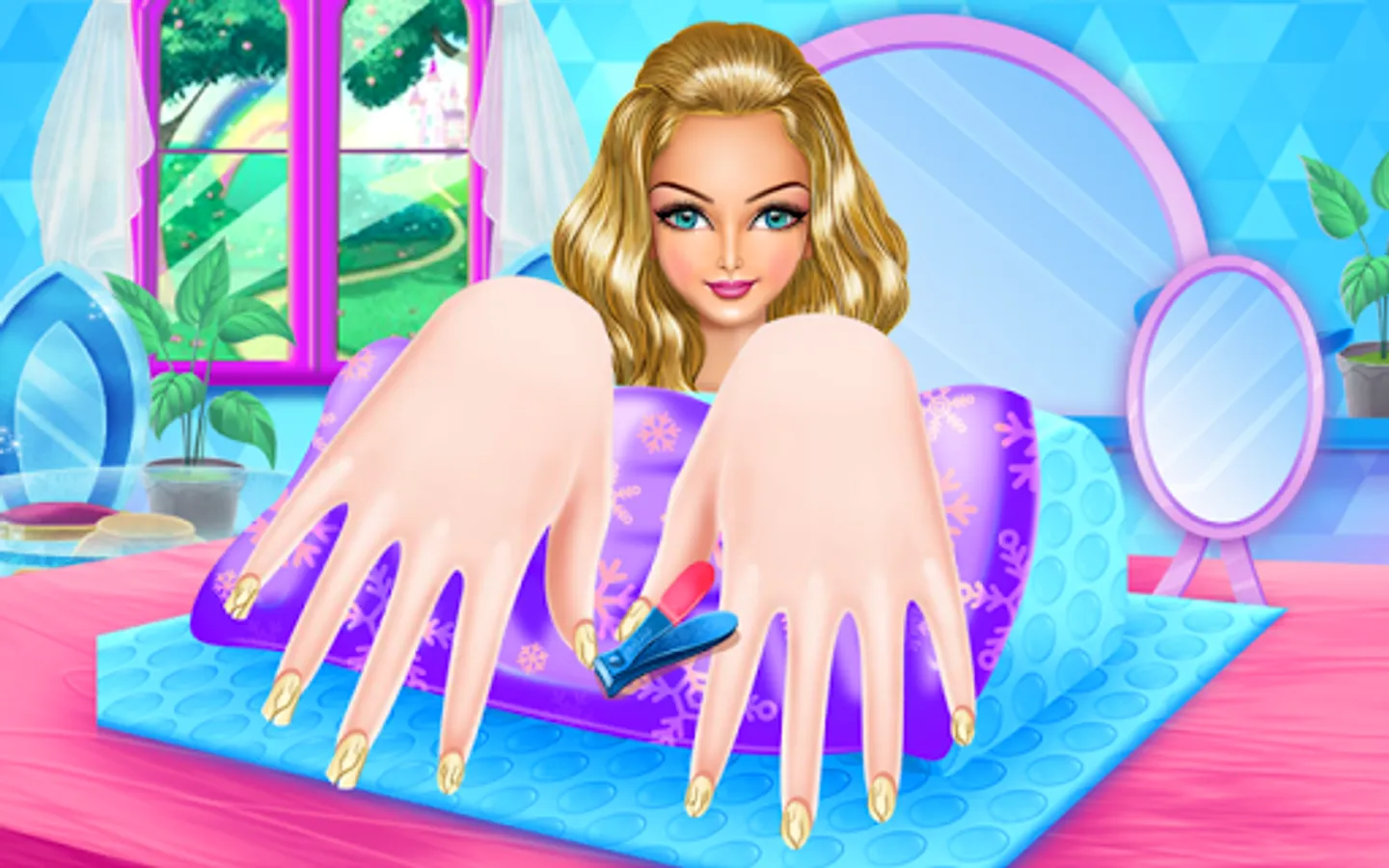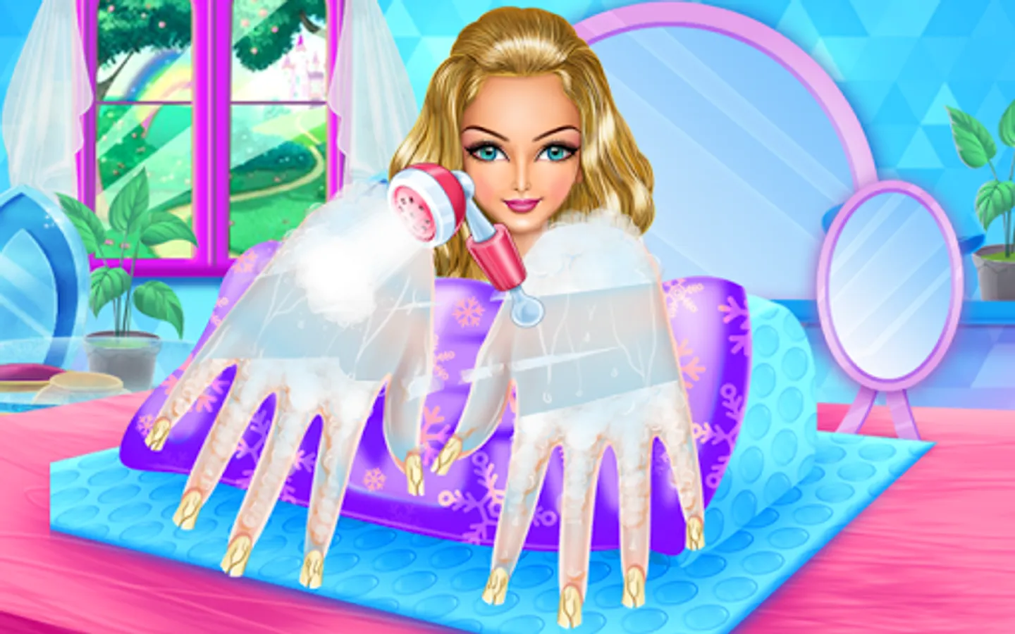 We all need our personal time to relax and feel good and that time could be spent in a beauty salon for a special manicure. This is the way our ice princess decided to spoil herself in her day off and your job is to do your best to accomplish that. You have to be aware that you need to complete two stages if you want to make this girl happy.